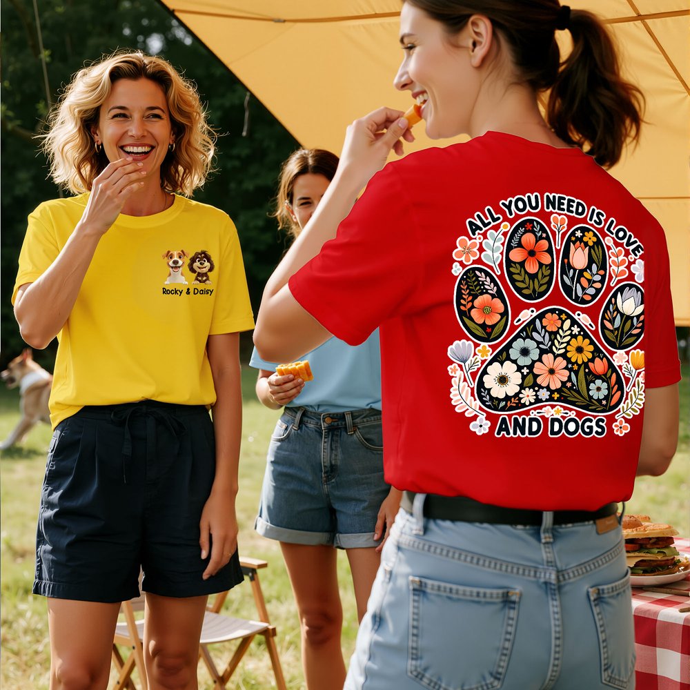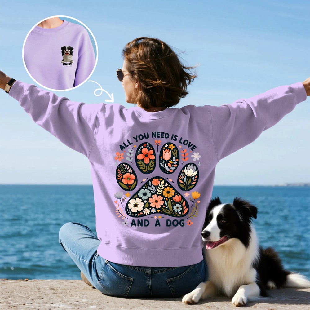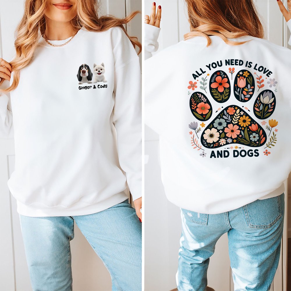 You can customize 3D images for 1-3 dogs and give them names, giving each adorable pet a unique personality. Floral and paw elements are incorporated on the back, along with the warm slogan "All You Need Is Love And A Dog." The adorable pet becomes a touching photo album, telling its story on the garment, creating a sense of comfort and capturing personal memories.