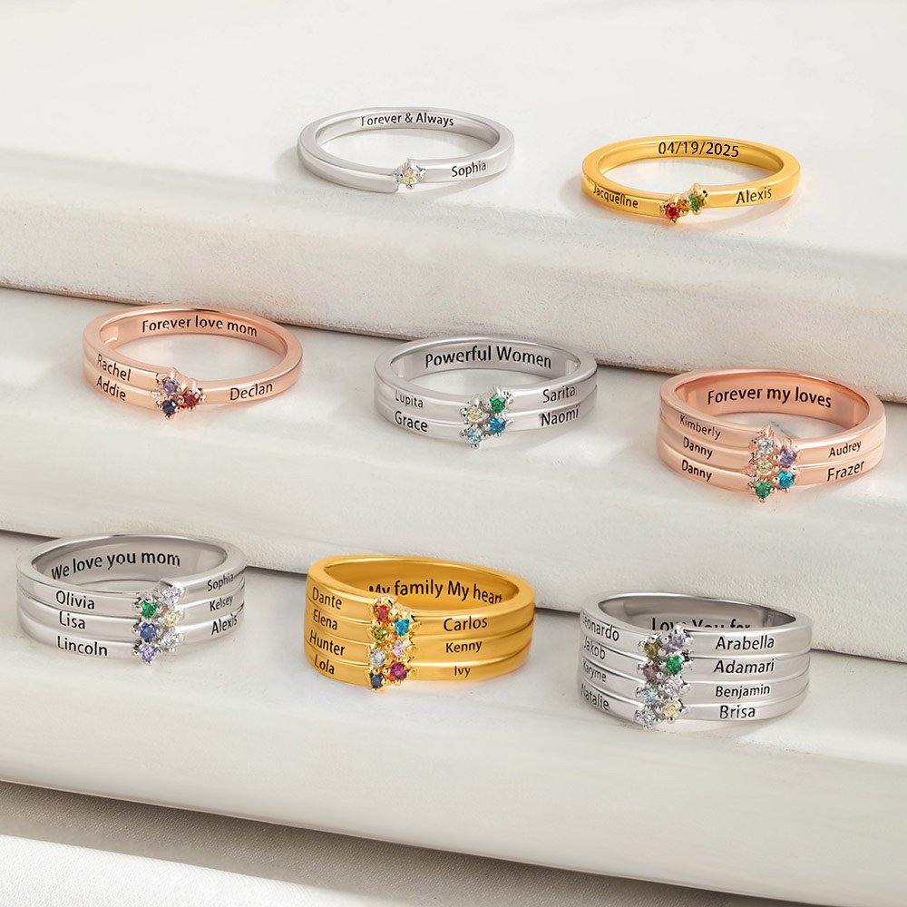 This ring features 1-8 birthstone, symbolizing the uniqueness and inherent worth of every individual. The thoughtful addition of a customizable name inside the band, you can offer recipient‘s name, making it a meaningful keepsake.