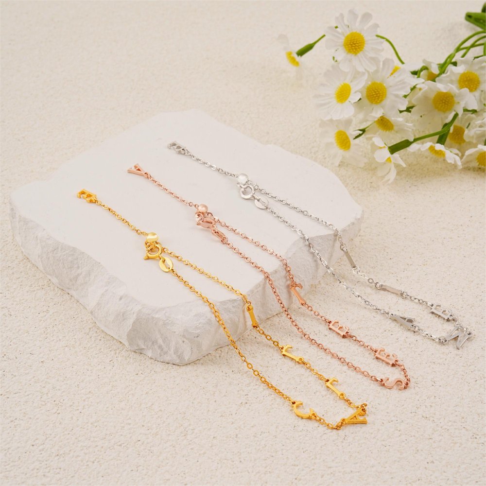 Crafted from premium materials, the bracelet features a smooth, finely textured chain that feels comfortable against the skin without irritating. Each letter is meticulously finished with polished edges and long-lasting coloring that resists fading and deformation. Designed to endure daily wear, it retains its beauty and texture over time.