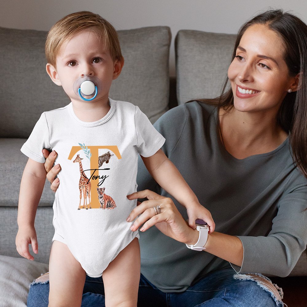 As a baby shower, birthday, or any occasion gift, this personalized jungle animal t-shirt combines adorable style and lasting quality, making it a cherished present for the newborn or young child in your life.