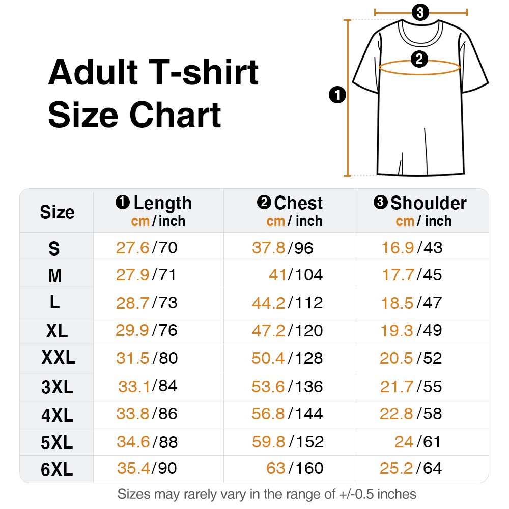 | Measurement: | Baby Onesie: 0-3M, 6M, 12M, 18M, 2T Kid T-shirt: S, M, L, XL Adult T-shirt: S, M, L, XL, XXL, 3XL, 4XL, 5XL, 6XL |