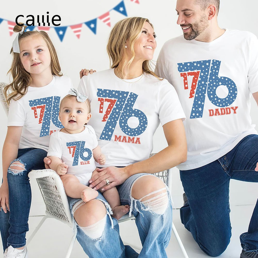 This matching outfit set is specifically designed for celebrating the American Independence Day, engraved with deep festive ambiance, and patriotic sentiment. It cleverly incorporates the theme of the Fourth of July with the classic red, white, and blue color scheme of the American flag, adorned with stars and stripes symbolizing freedom and dreams.