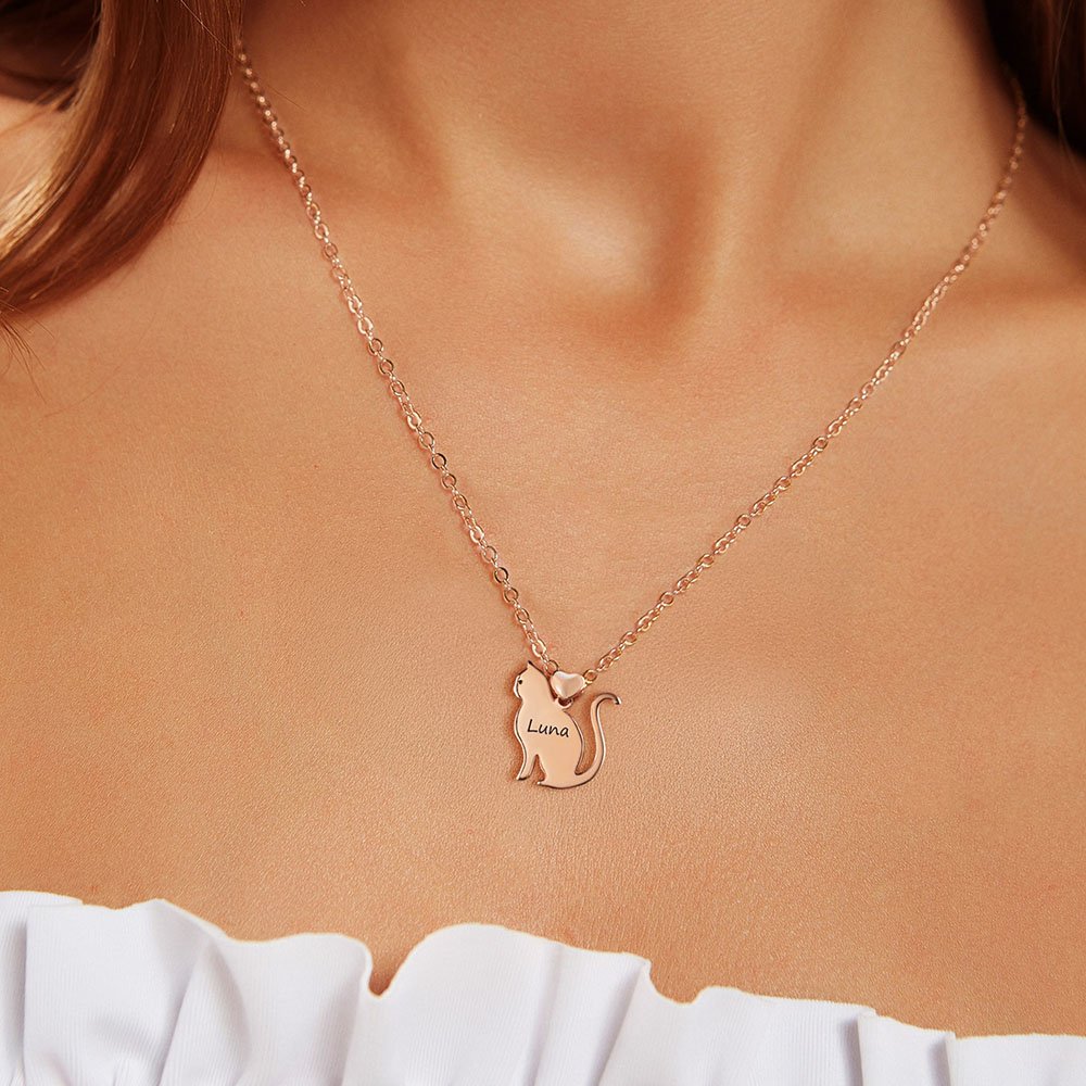 This necklace is inspired by 3D three-dimensional love and cat shadow, cleverly blending the elegant outline and romantic heart shape of the cat, making it both playful and artistic. You can engrave the cat's name and make this gift a unique collection.