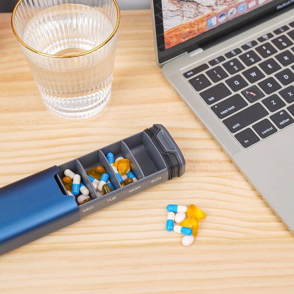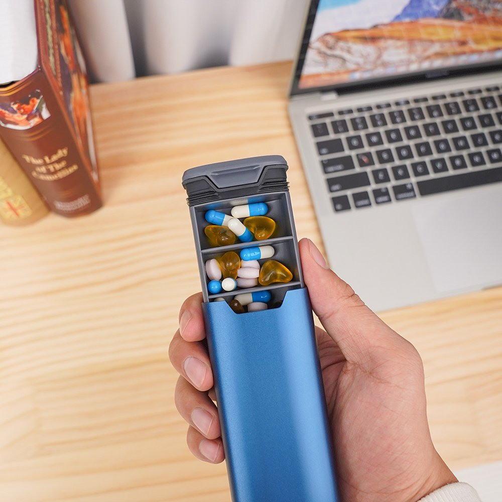 The push-pull design is not only aesthetically pleasing but also prevents the pill box from opening accidentally. Made of 6061 aluminum and solid wood, the box is scratch- and fingerprint-resistant and lightweight. Its food-grade polymer tray and silicone seal design can effectively prevent moisture and leakage so that your medicines are always dry. This is an ideal companion for your daily medication, travel, and business trips.
