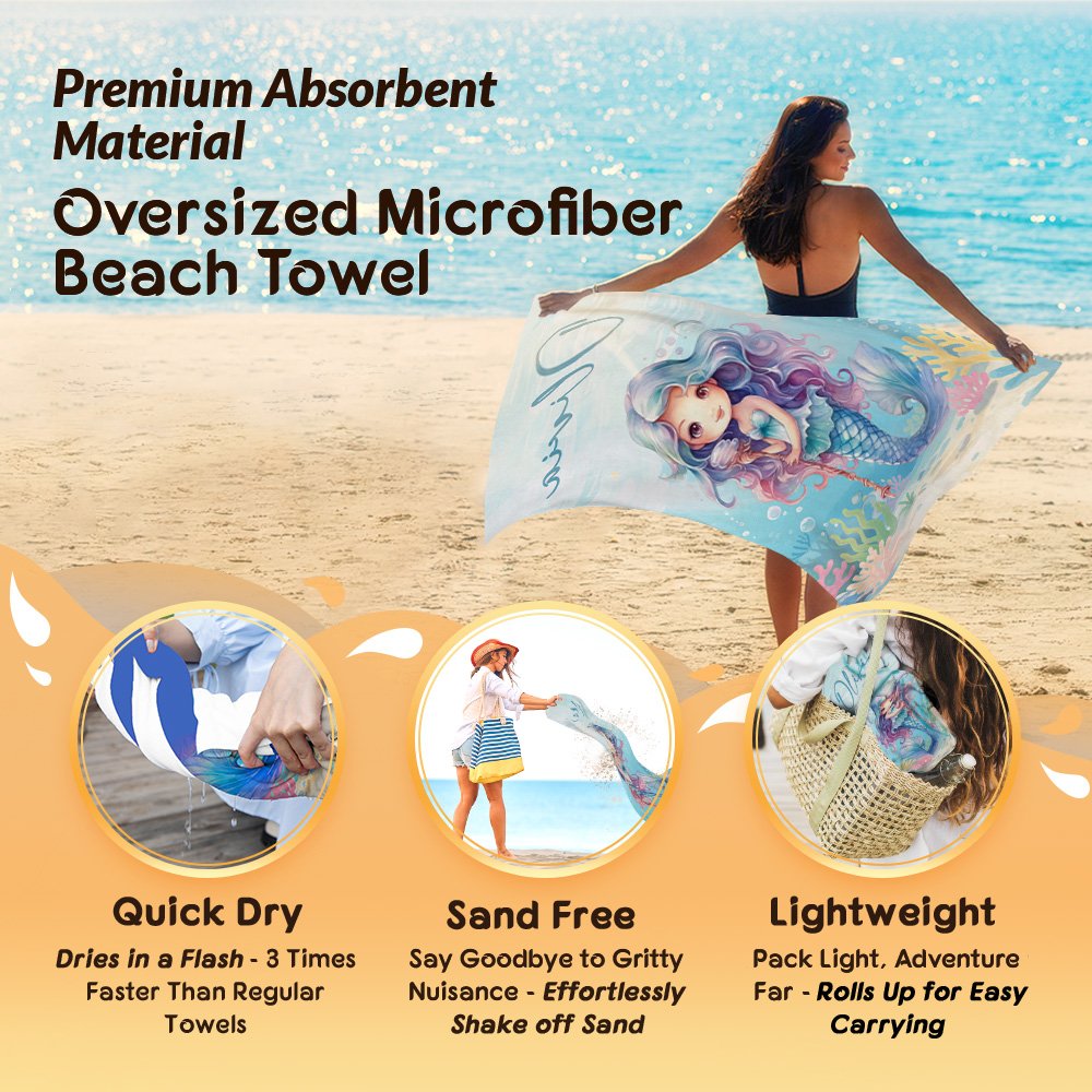 | Feature: | Super Absorbent, Fast Drying, Durable and Soft, Sand Free, Oversized, Lightweight and Portable, Cartoon Mermaid Design |