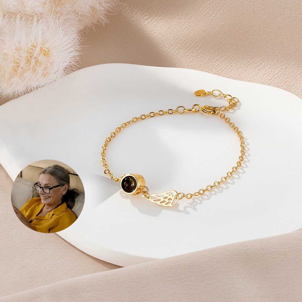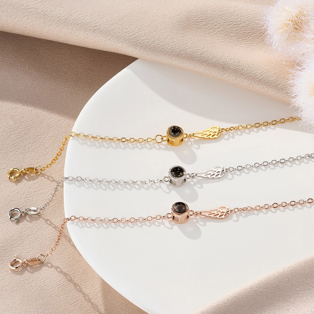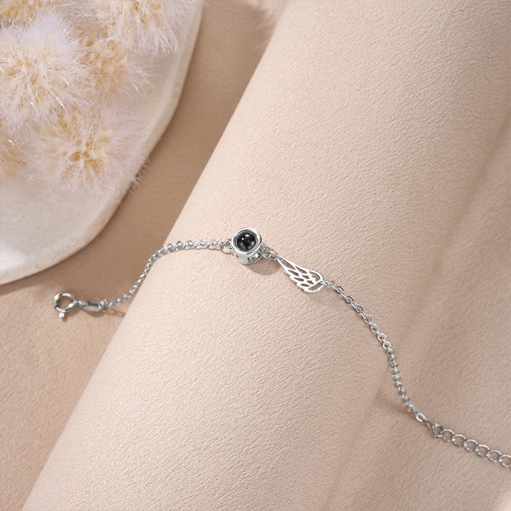 This Angel Wings bracelet is designed to honor those precious angels who are no longer with us. Featuring a hidden projection, you can choose your favorite photo and 100 languages to say I love you and keep your precious memories alive. It is a warm reminder of the eternal connection between our loved ones and us. It is also a symbol of love, strength, and memory.