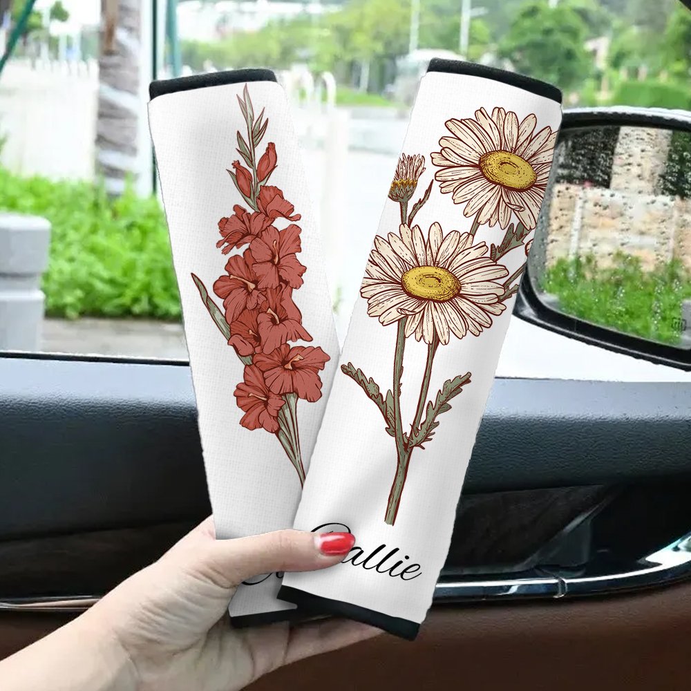 Customize your seat belt cover with your name and a birth flower design that showcases your unique personality. This stylish accessory adds a personal touch to your vehicle.