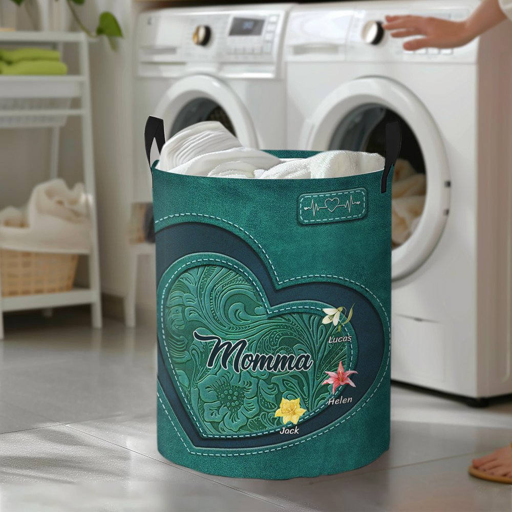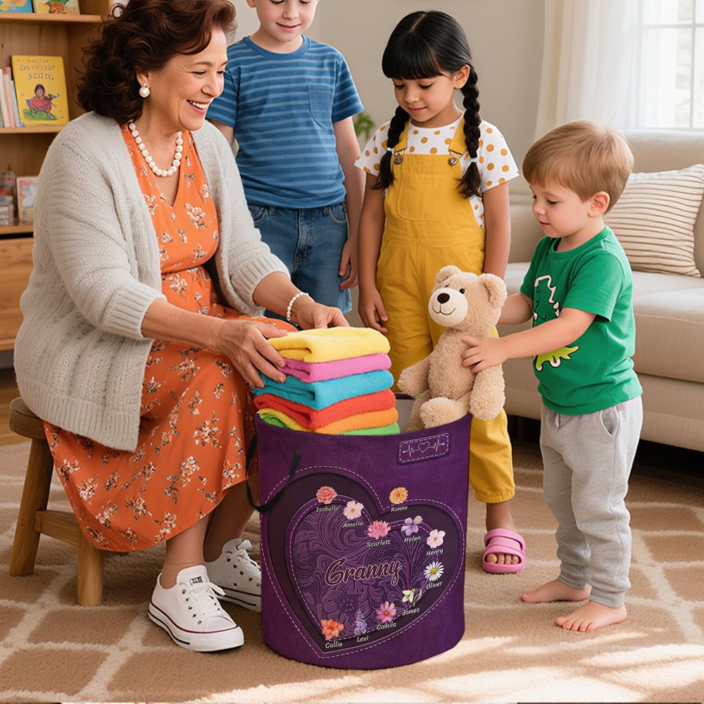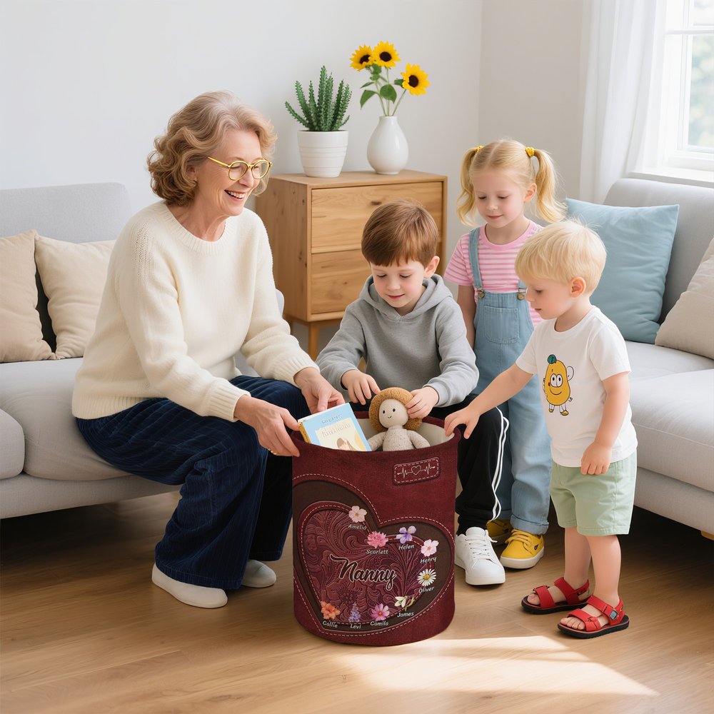 A double-layered heart outline exudes warmth, featuring a customizable title at its center and surrounding each family member's birth flower and name. This practical piece blends the warmth of family stories with decorative charm, turning daily storage into a heartfelt display of love.