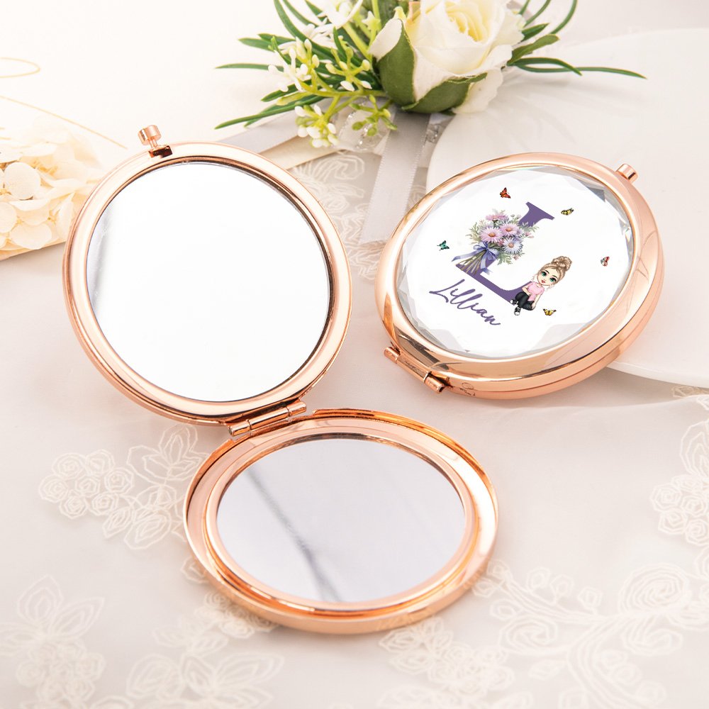 A delightful combination of nativity bouquets and personalized cartoon characters for added holiday charm. Each mirror can be customized with names and initials to create a unique, personal accessory that makes a statement.
