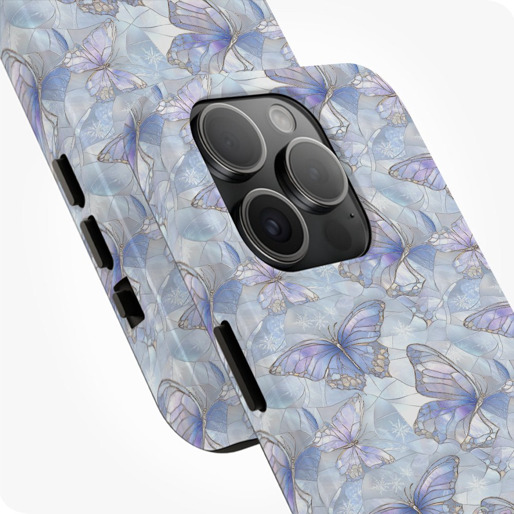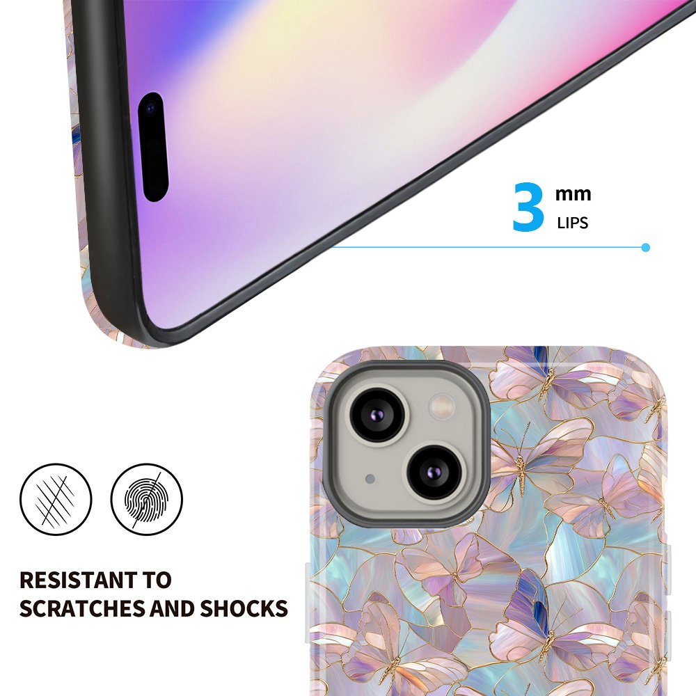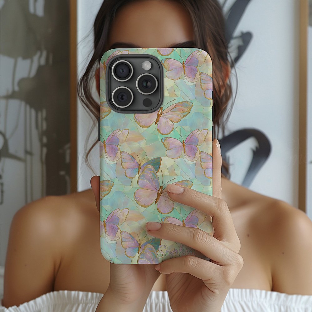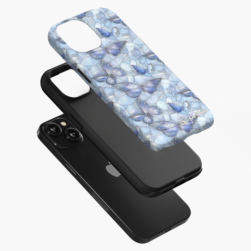 The pattern of this phone case imitates the splicing texture of stained glass, with clear lines outlining "glass pieces" of different shapes. The butterfly patterns in 5 styles are lifelike, bringing a sense of artistry and transcendence, as if you are in a dreamlike realm. You can also add your name to the phone case to make this phone case a unique and exclusive item.