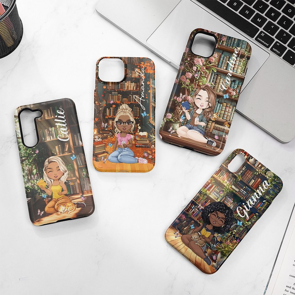 This phone case stands out for its unique design, which perfectly combines the cartoon character of a book lover with a retro bookshelf, and is decorated with a butterfly. You can also customize your name, adding a unique style to your phone. The whole design not only highlights your personality, but also shows care for book lovers.