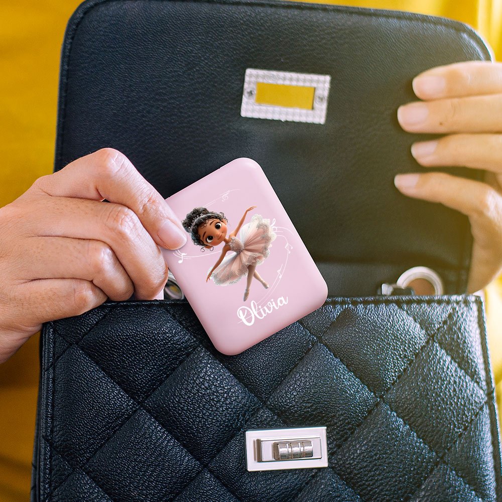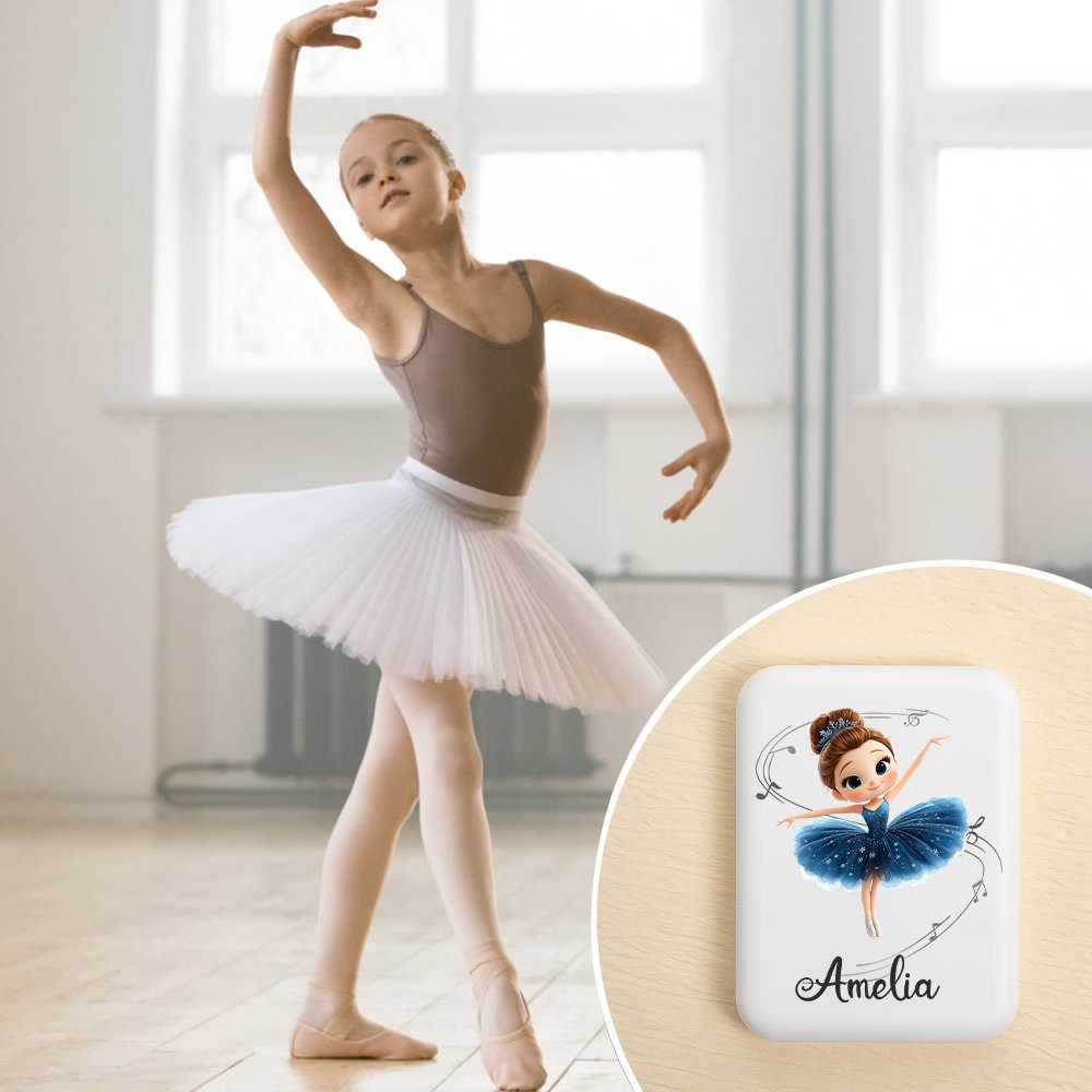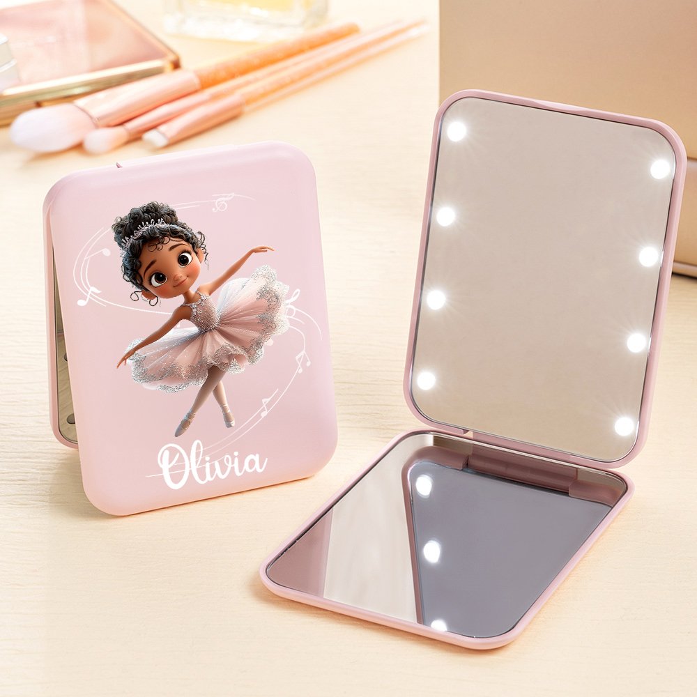 This makeup mirror captures the elegance of ballet through a charming design that merges graceful dance poses with dreamy lighting effects. The lamp features a ballerina figure and a customizable name, creating a mirror that reflects both beauty and individuality.