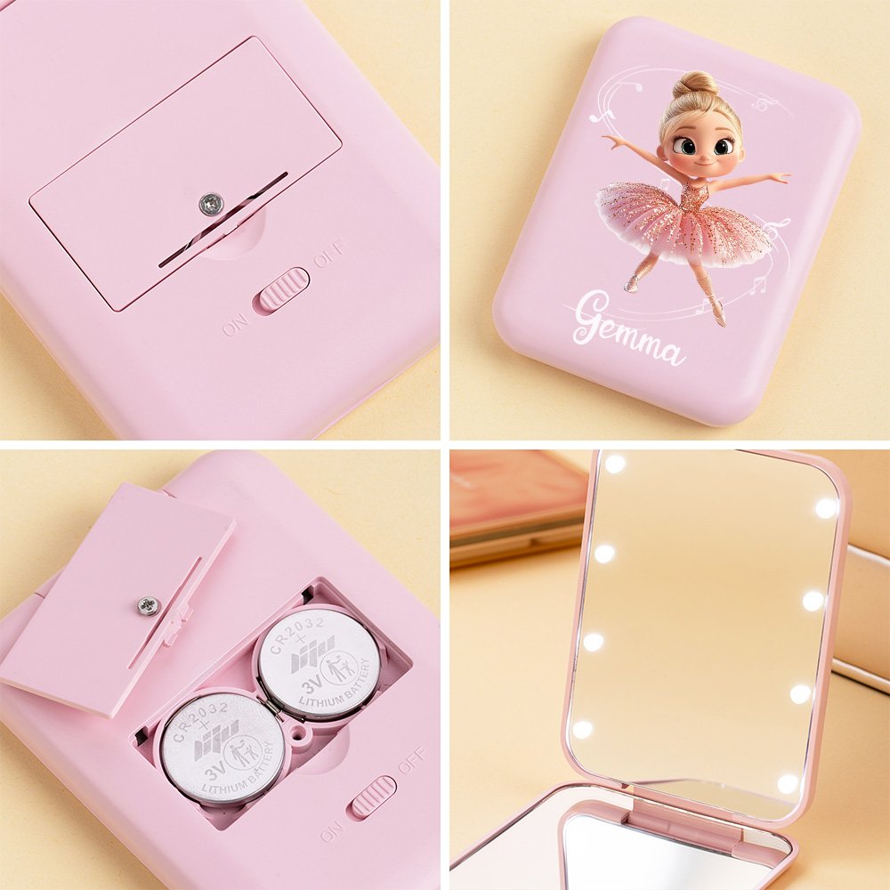 | Feature: | LED Light, Double-Sided Mirror with One Side Magnifying Effect, Ballet Girl Design |