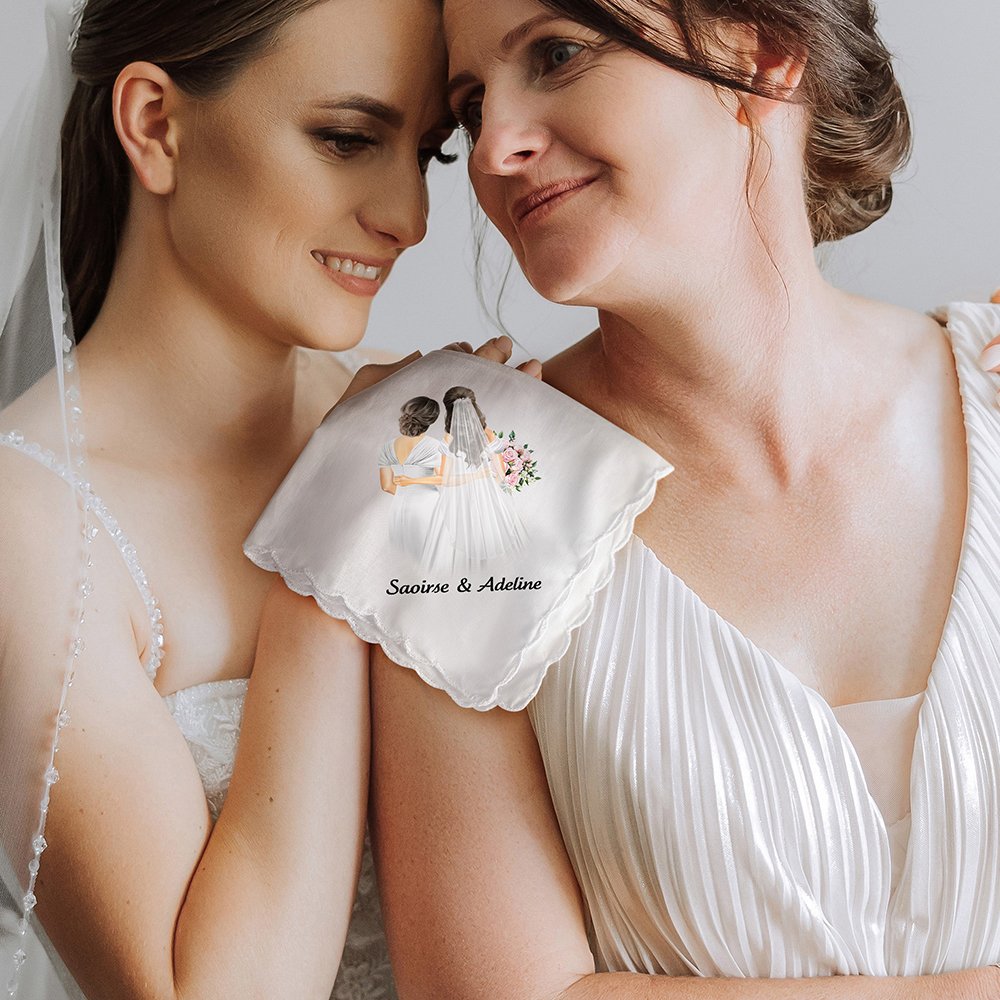 On this unique white square handkerchief, you can customize the clip art images of the bride and her mother. Through exquisite craftsmanship, your warm moments and similar charm are presented on the handkerchief, making each touch filled with the nostalgia of family love and the anticipation of romance. The fan-shaped edge design adds a touch of elegance and liveliness, instantly attracting everyone's attention.