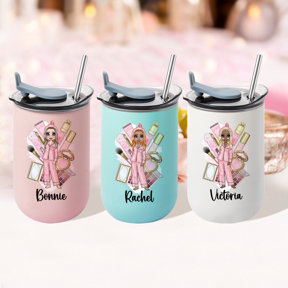 Inspired by the adorable pajama party girl, this design cleverly blends aesthetic elements with sweet artistry to instantly evoke a relaxed, joyful party atmosphere. Customizable details—such as hairstyle, skin tone, and a personalized name—transform each insulated tumbler into a unique work of art.