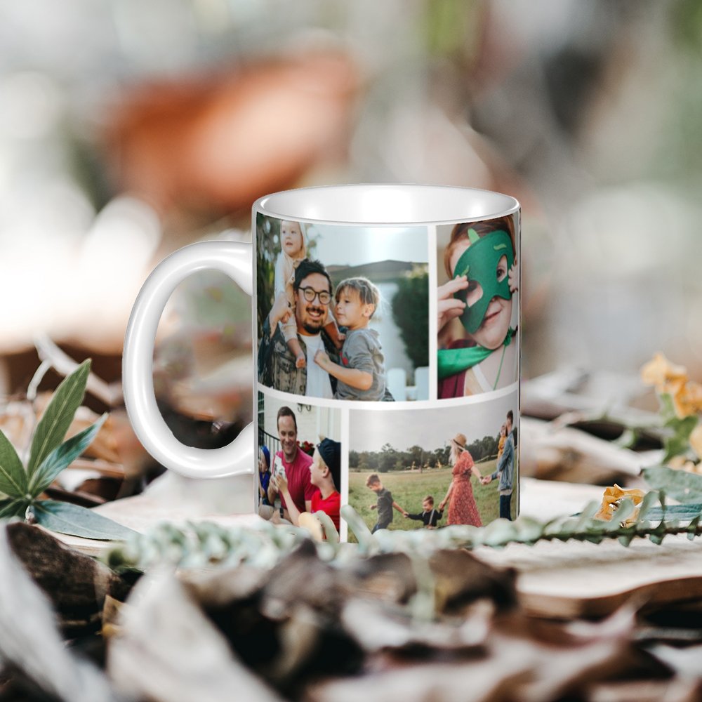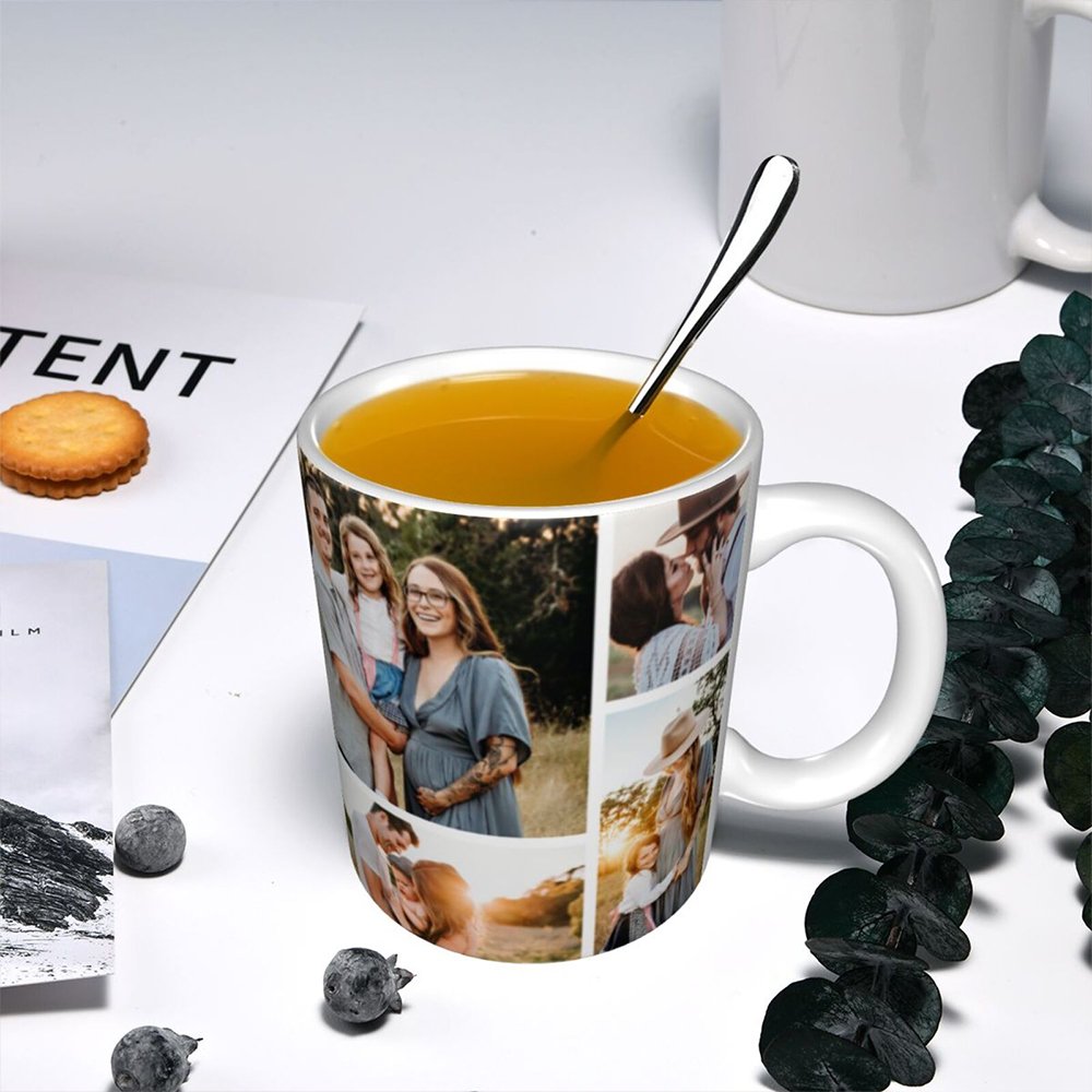 Create a unique family mug by customizing it with 8 photos, that showcase your favorite family moments, vacation pictures, or any special memories you want to cherish.