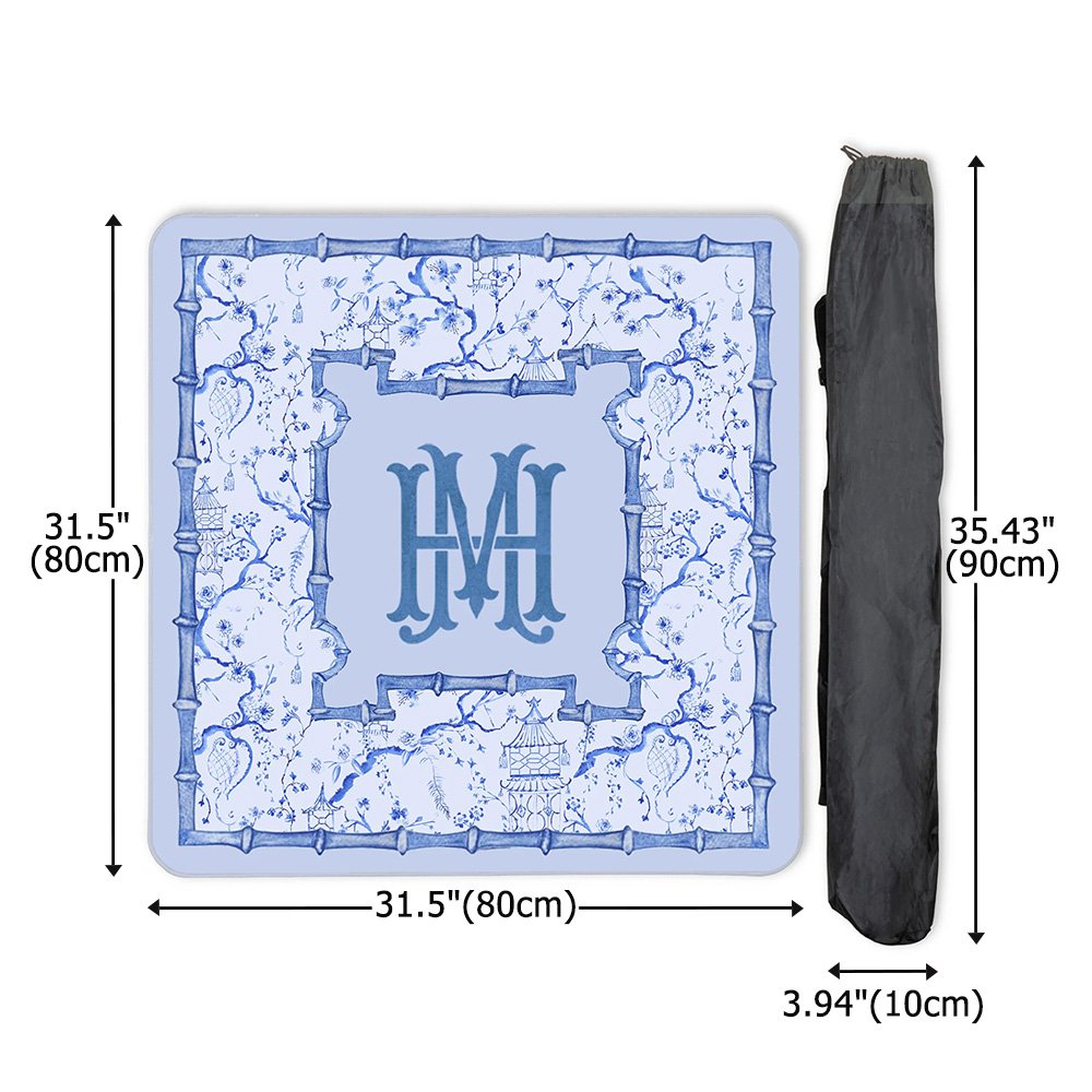 Featuring a classic blue and white color scheme, this mahjong mat incorporates ink-wash cherry blossoms, birds, pagodas, and bamboo patterns. Light blue stitching along the edges echoes the overall design, showcasing Chinese style and oriental artistic beauty. Custom lettering adds a unique touch, making the mat stand out from the crowd and reflecting personal style.