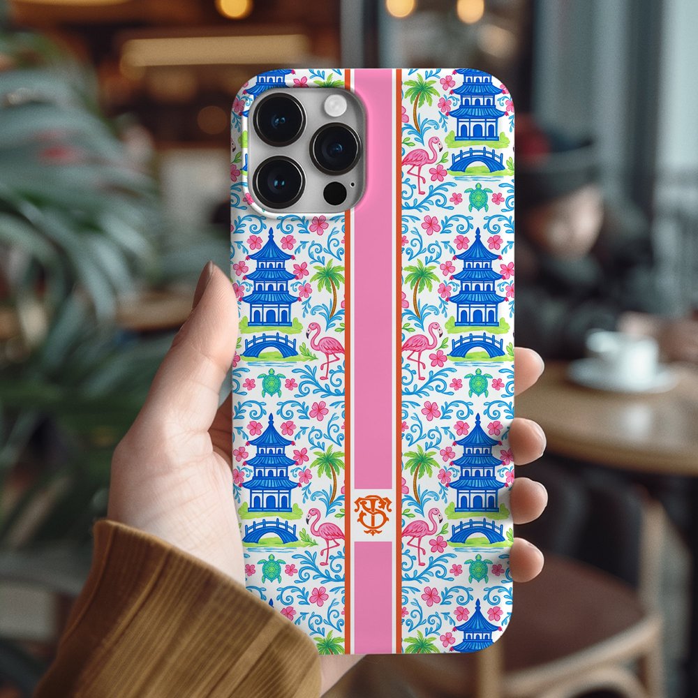 Centered on Chinoiserie aesthetics, this design incorporates Eastern architectural and botanical motifs. The overall style blends classical charm with refined elegance, breaking away from the monotony of ordinary phone cases. It also offers customizable interlocking monograms to satisfy users' pursuit of personalized design.