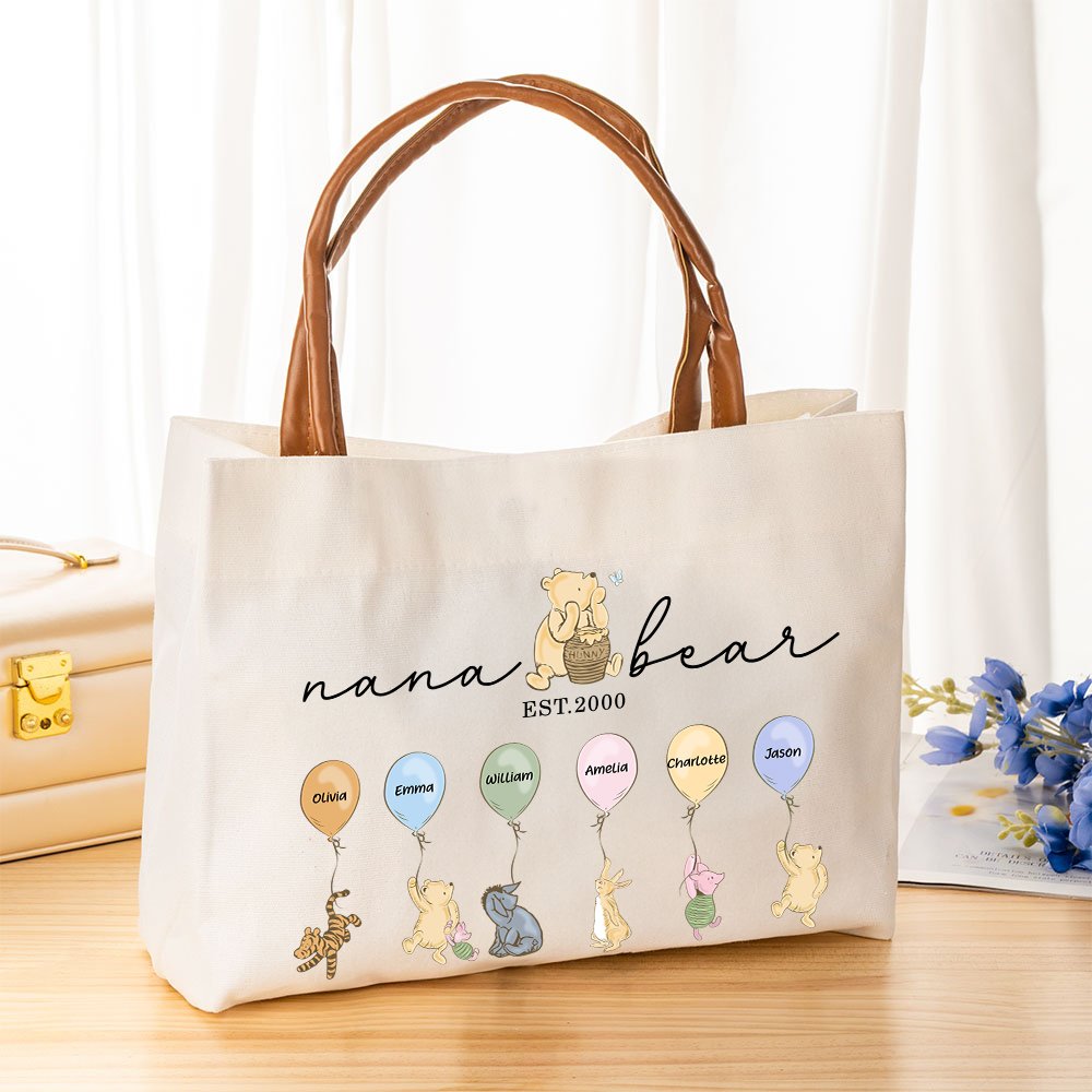 This tote bag features the classic Winnie the Pooh, created by the famous author A.A. Milne, with a customizable title and year, full of childishness and warmth. You can also choose to customize 1-12 animals, 6 different animals for you to choose from, making it more special.