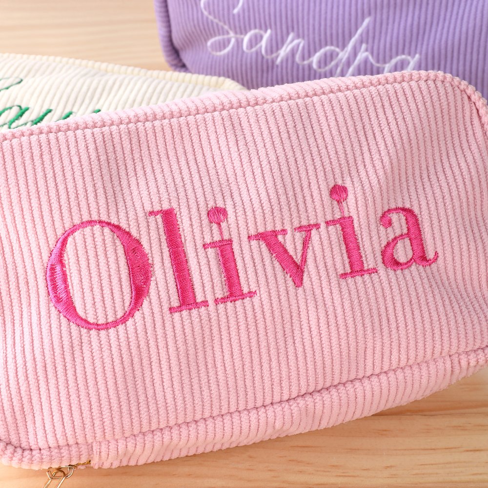 Personalized Multicolor Corduroy Makeup Toiletry Bag with Embroidered Name Daily Use Birthday Wedding Gift for Women