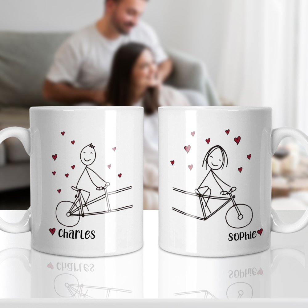 Our couple white mug is a romantic gift tailored for couples who love life and express love. There are two options for this personalized mug. You can choose a simple stick figure pattern or upload your own and your partner's avatars and customize them with your names to make it a gift for two people.