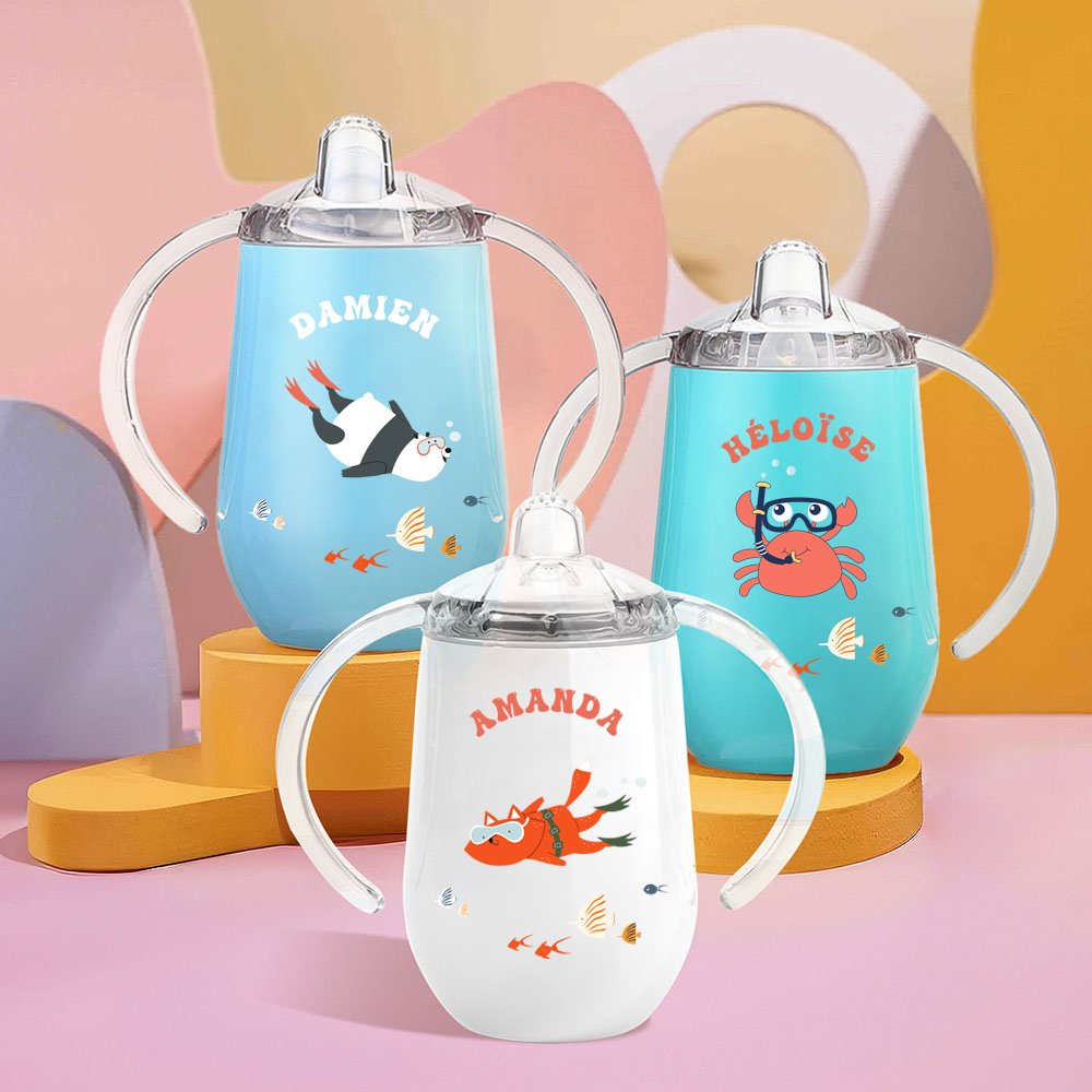 Personalized Cute Animal Underwater World 10oz Insulated Sippy Cup with Name and Handle Baby Shower Birthday Gift for Kids
