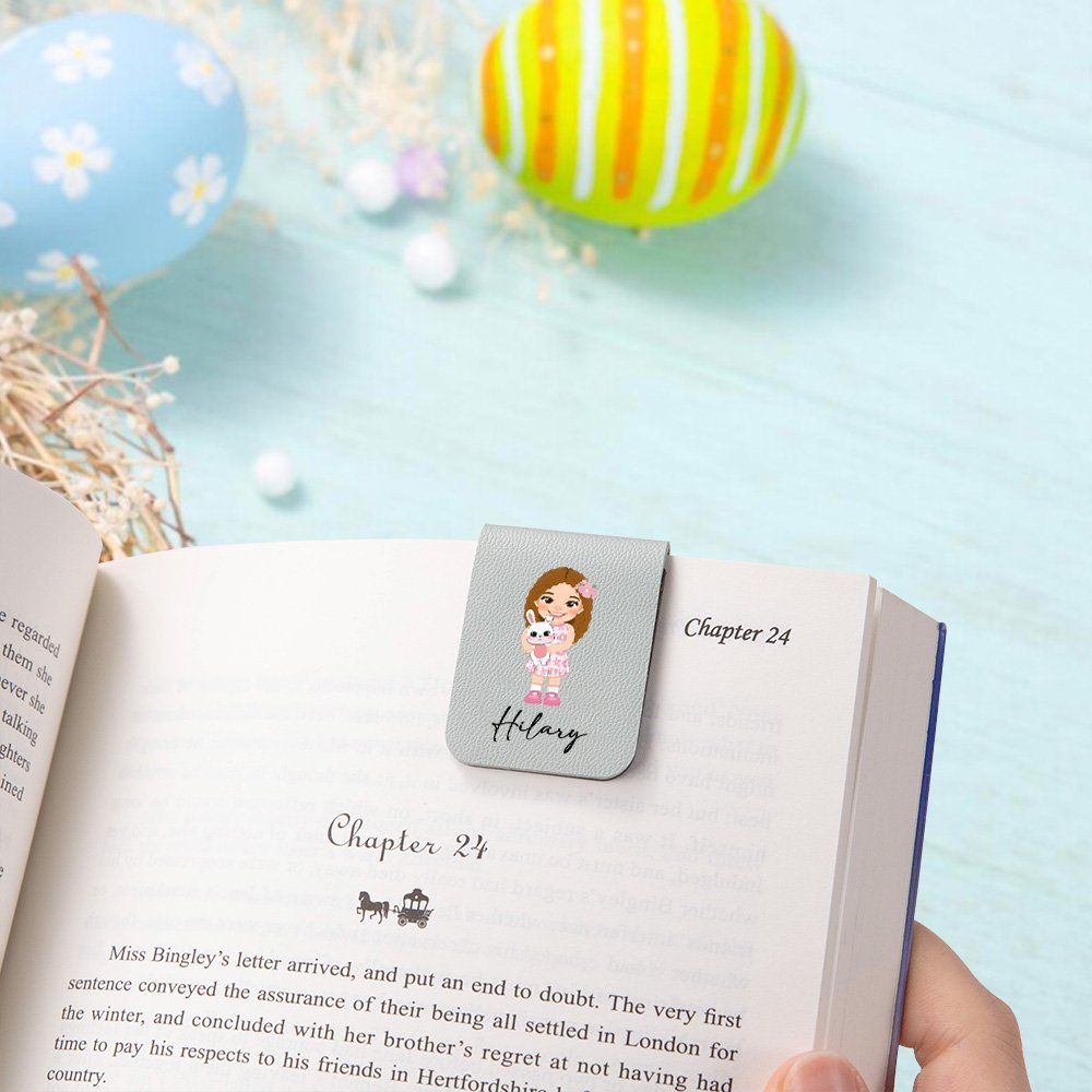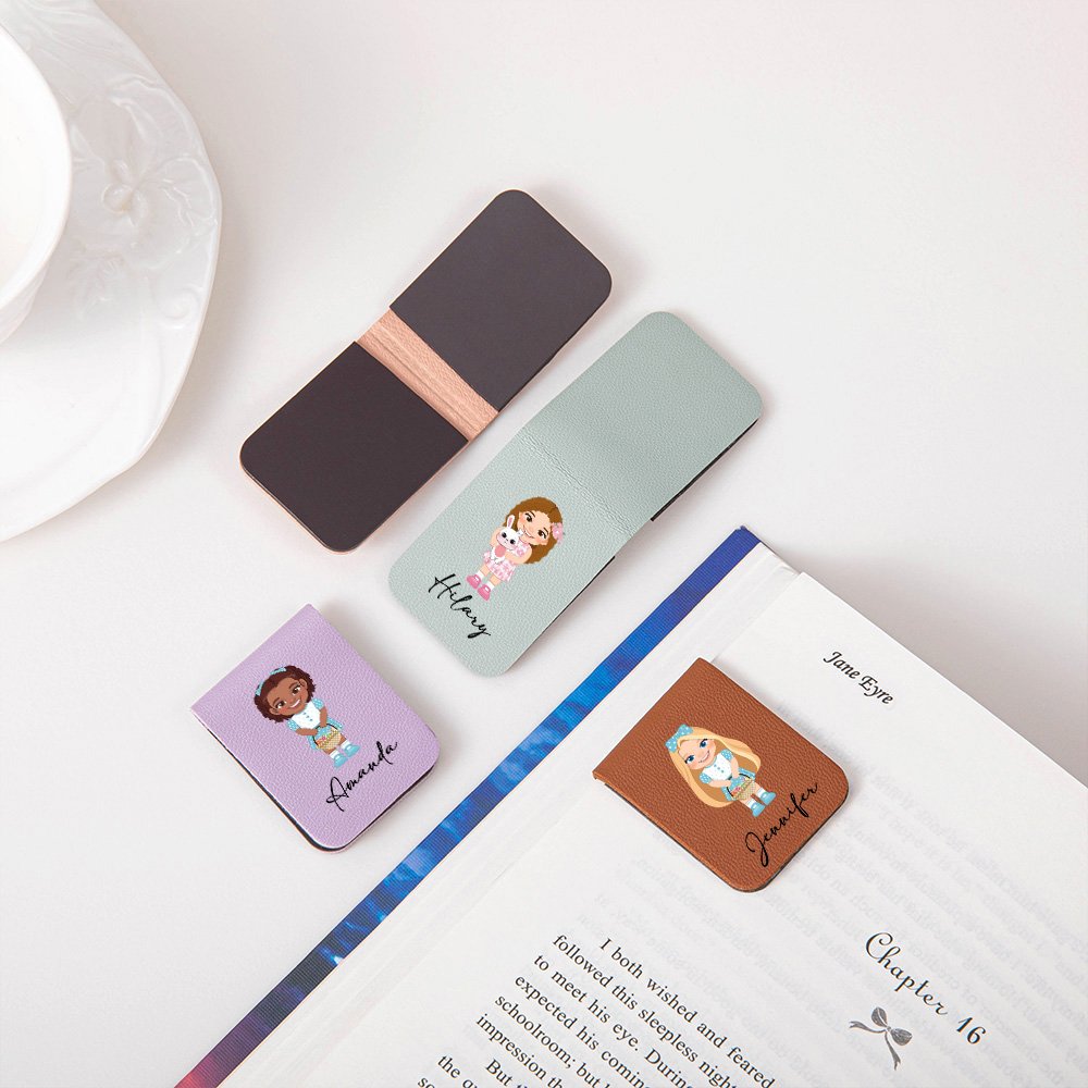 This bookmark features cute cartoon girls wearing colorful clothes and holding cute decorations such as rabbits and flower baskets, making the bookmark not only practical but also interesting. The customizable name adds a sense of exclusivity to the bookmark. We offer 13 different bookmark colors to enrich your choices.