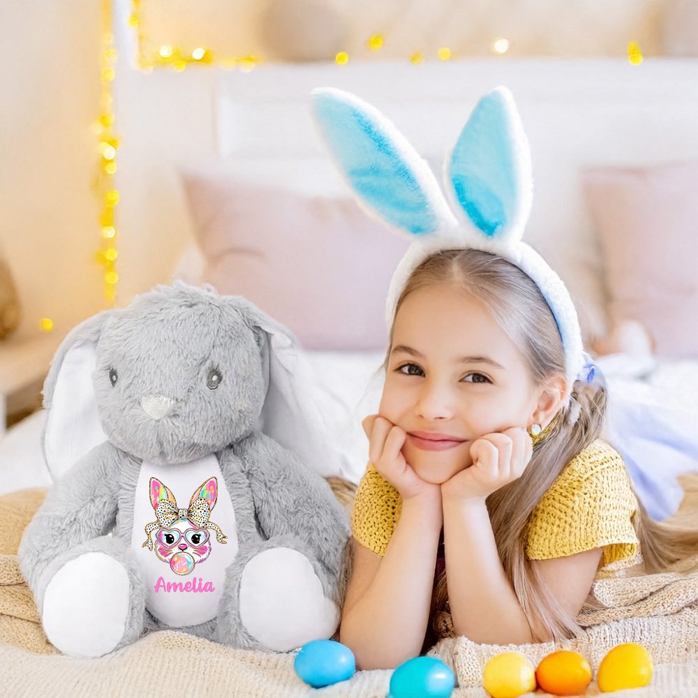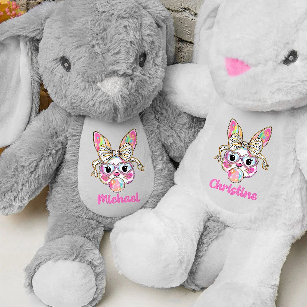 The toy adopts a cute Peter Rabbit shape, soft materials and rounded lines make it look very intimate. Each doll's belly is also printed with a cute bunny blowing bubbles, and the child's name can be customized to make each toy unique.
