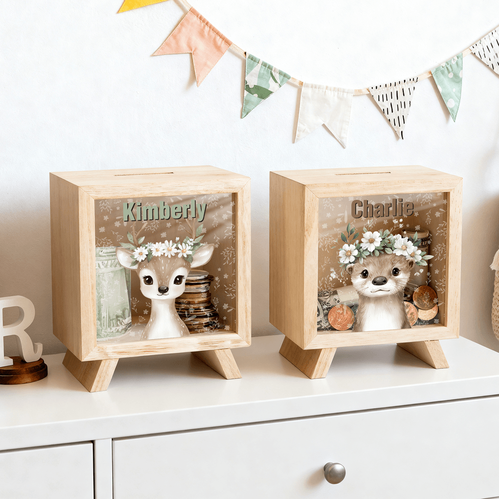 This charming piggy bank features a variety of delightful animal and floral designs that capture children's attention. With options to customize both the animal pattern and the child's name, it adds a playful and personal touch that makes saving money a fun and creative endeavor. Perfect for children's rooms or nurseries, it serves as both a practical savings tool and a whimsical decoration, appealing to both boys and girls.