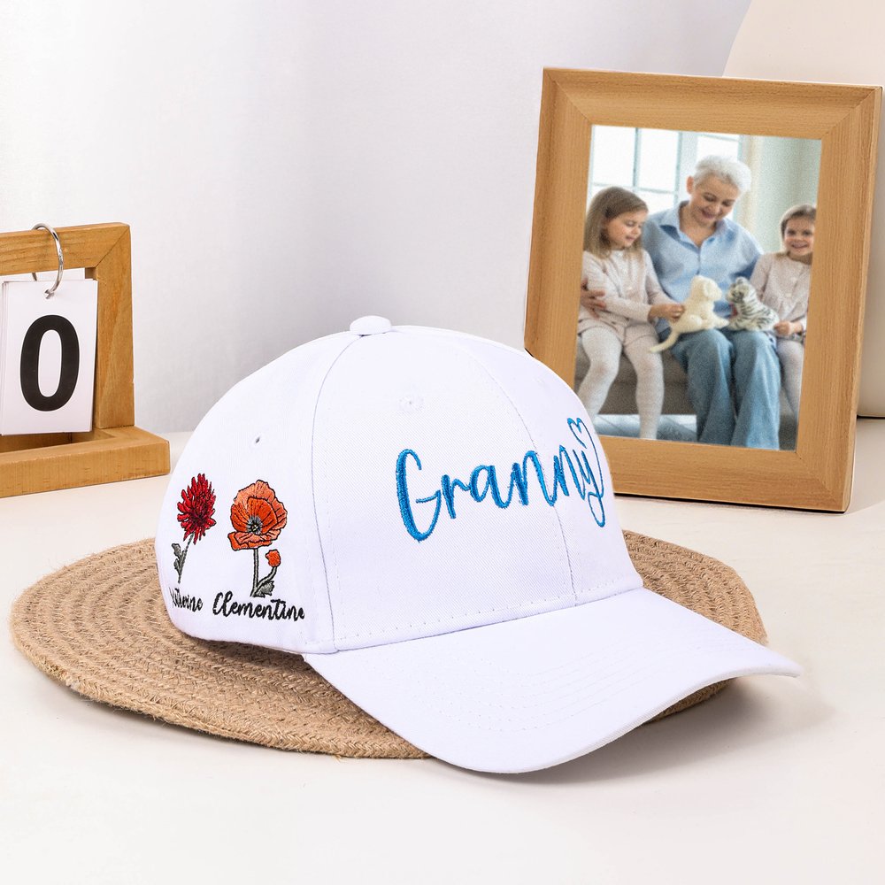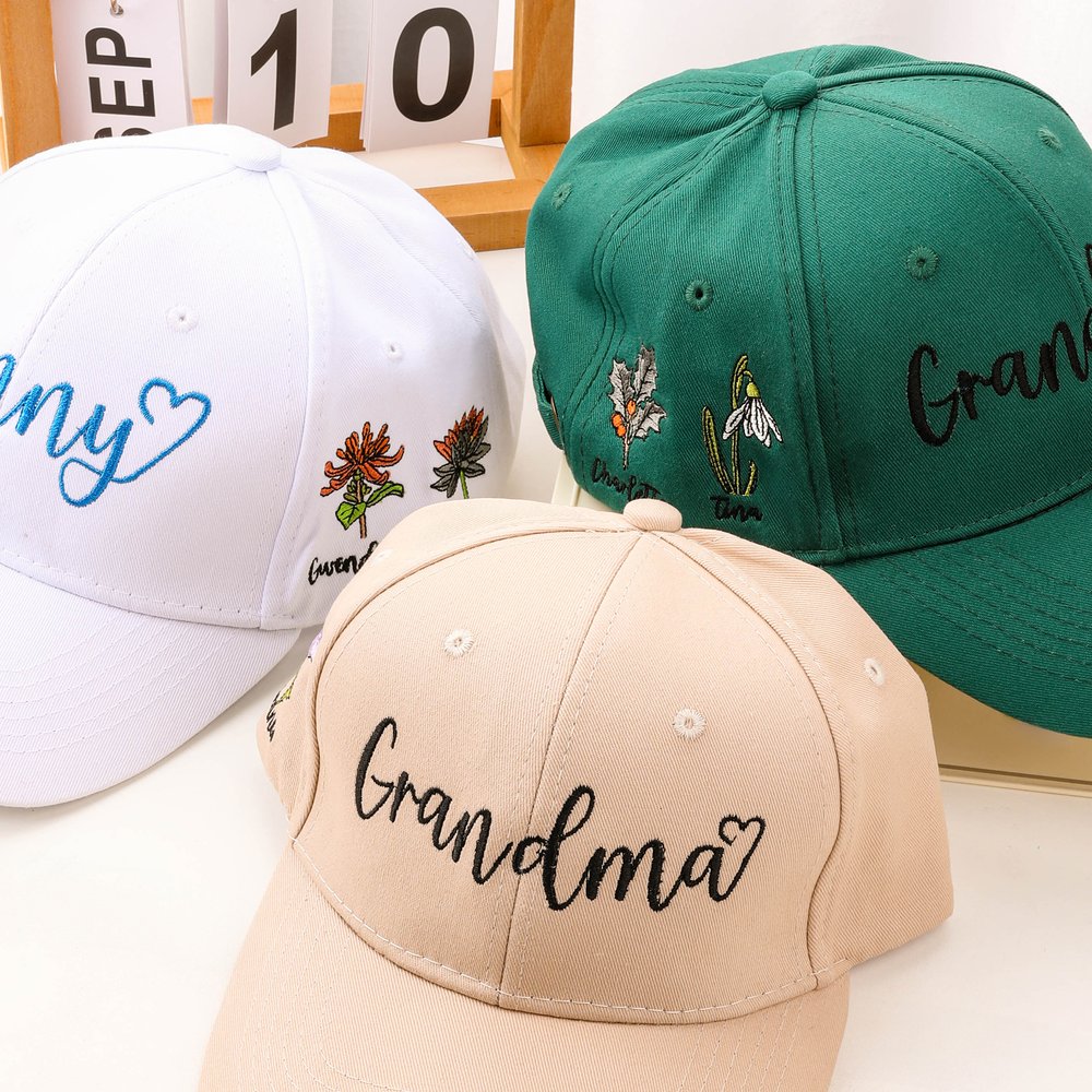 This cap is an ideal gift for female relatives and friends, such as grandmothers and mothers, suitable for multiple holiday scenes. On Mother's Day, customize a mother's birthday flower and name to convey "exclusive gratitude"; Gift on birthday, flowers and love elements hide blessings; Send it out when expressing her feelings in daily life, making her feel the warmth of being remembered.