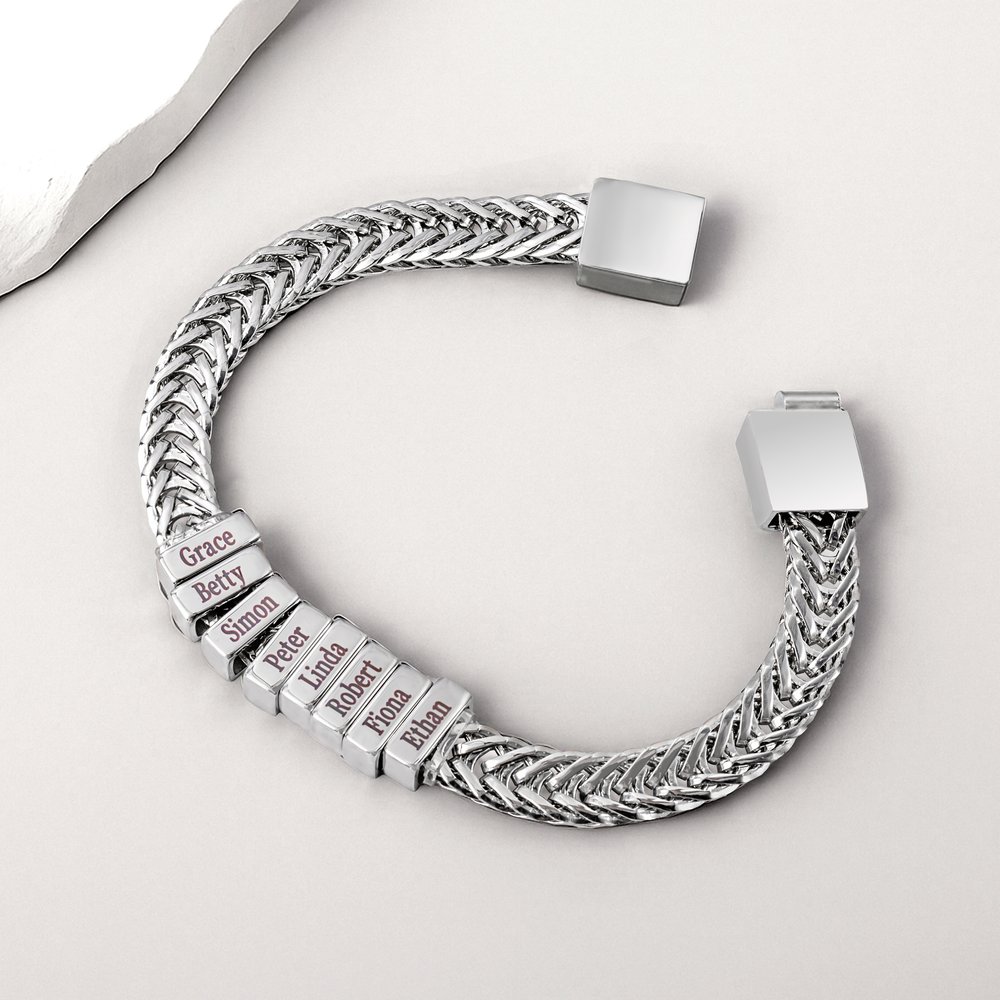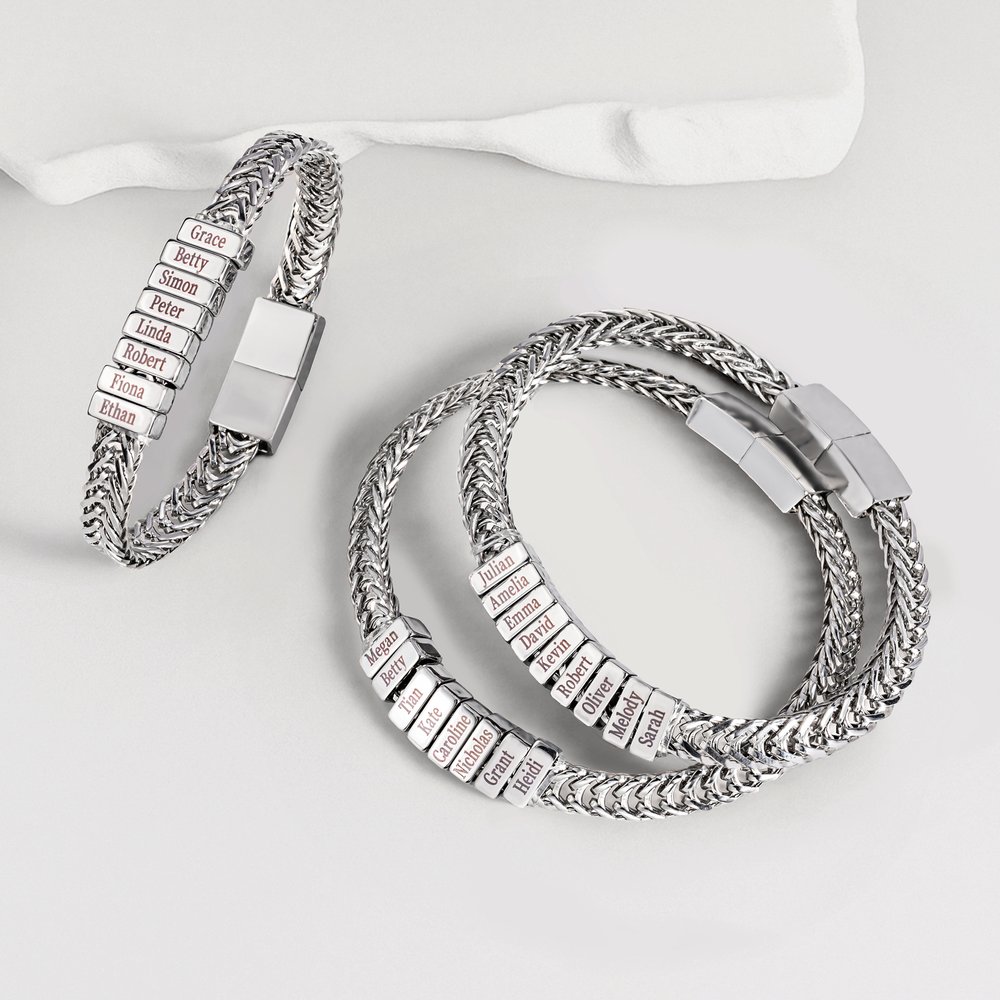 Made of high-quality stainless steel, every detail shows exquisite craftsmanship. The sturdy and durable component design is enough to cope with various frictions and collisions in daily wear. The engraved names are clear and accurate. It is simple and convenient to wear, fits the wrist better, and provides a comfortable and safe wearing experience.