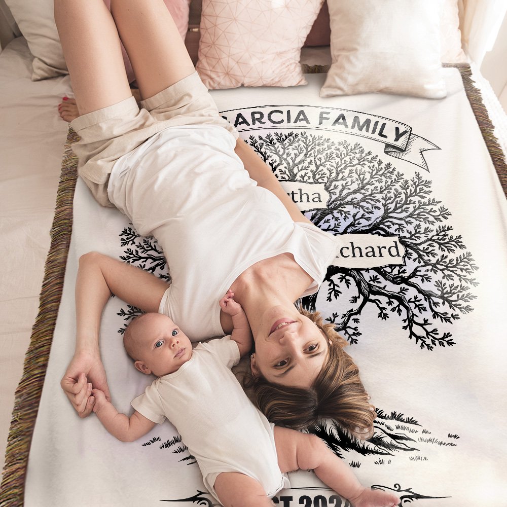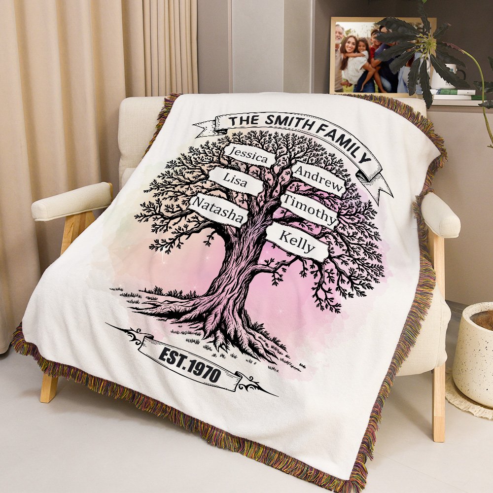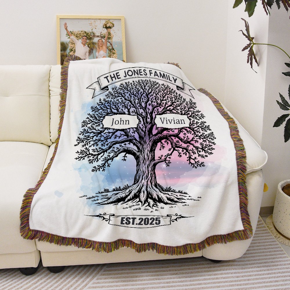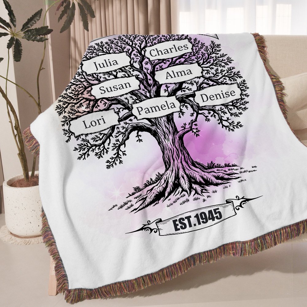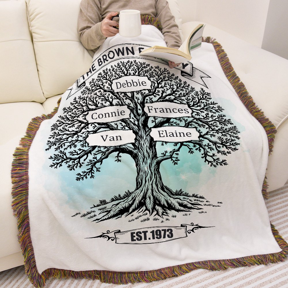 The blanket features a retro family tree pattern and can be customized with family members' names, embodying the bonds of family. This unique design breaks the monotony of ordinary blankets, serving as both warmth and a decorative piece that embodies family memories, adding a warm and distinctive touch to any home.