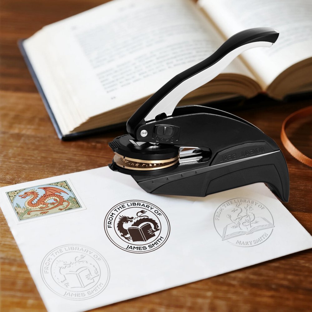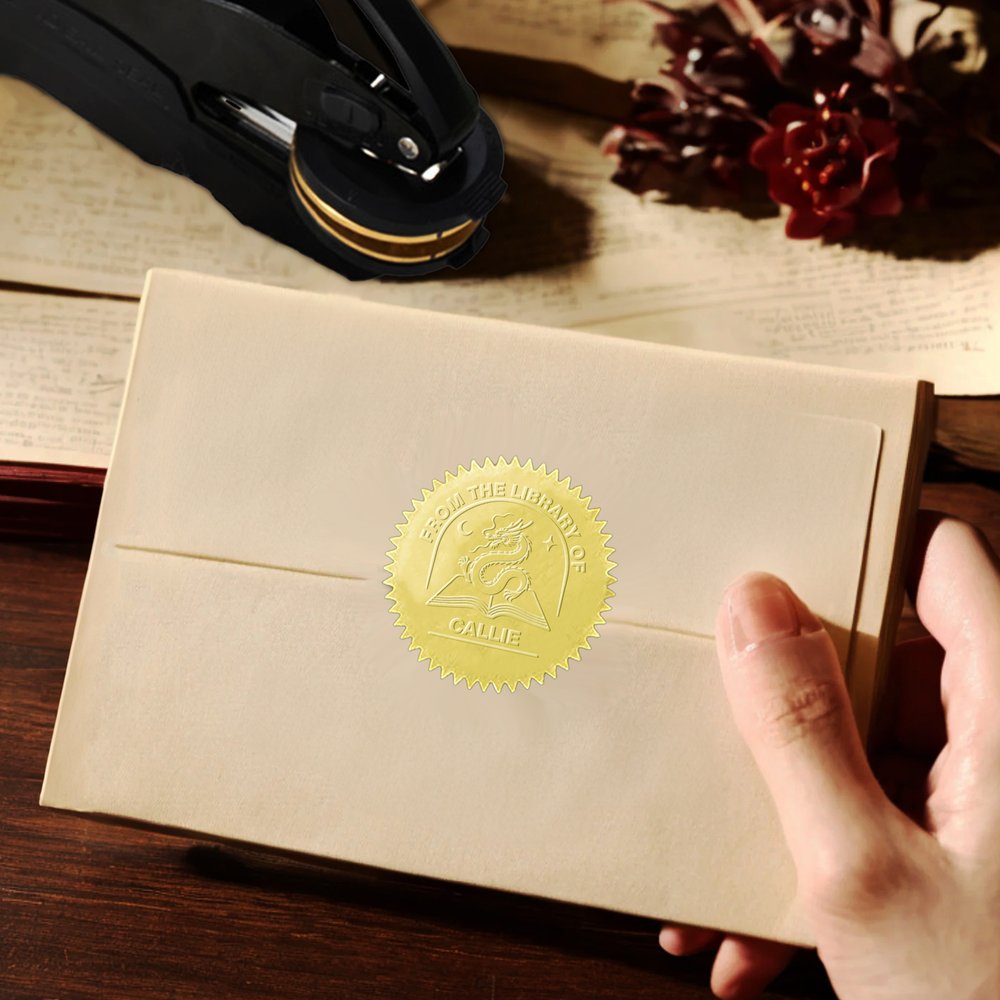 In mythology, dragons symbolize strength and wisdom, and this embossing stamp, inspired by a book dragon, celebrates the spirit of bravery and adventure, capturing the magic of fantasy. Personalization options allow you to customize it with your name and title, making it a treasure that will resonate with the dreamers and book lovers in your life.