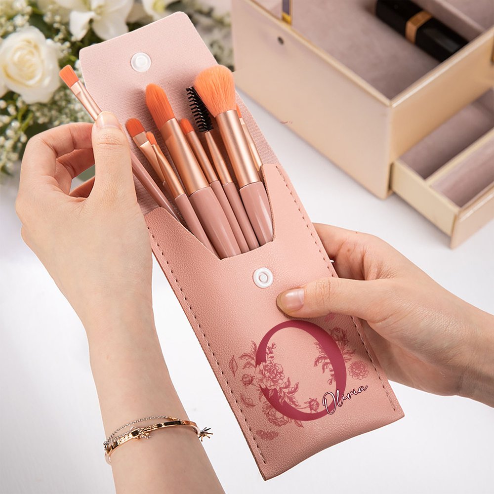 Personalized Floral Initial Makeup Brush Bag with 8 Pcs Makeup Brushes Travel Essentials Birthday Wedding Gift for Women