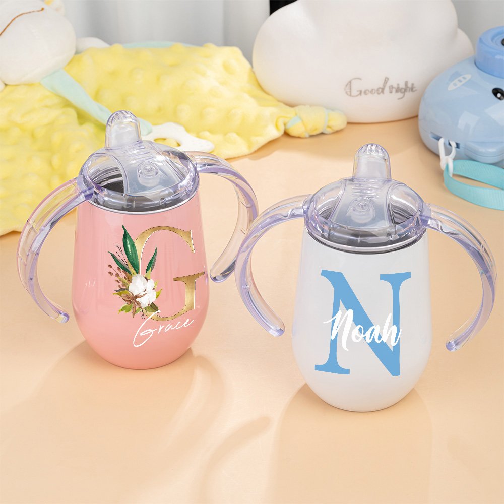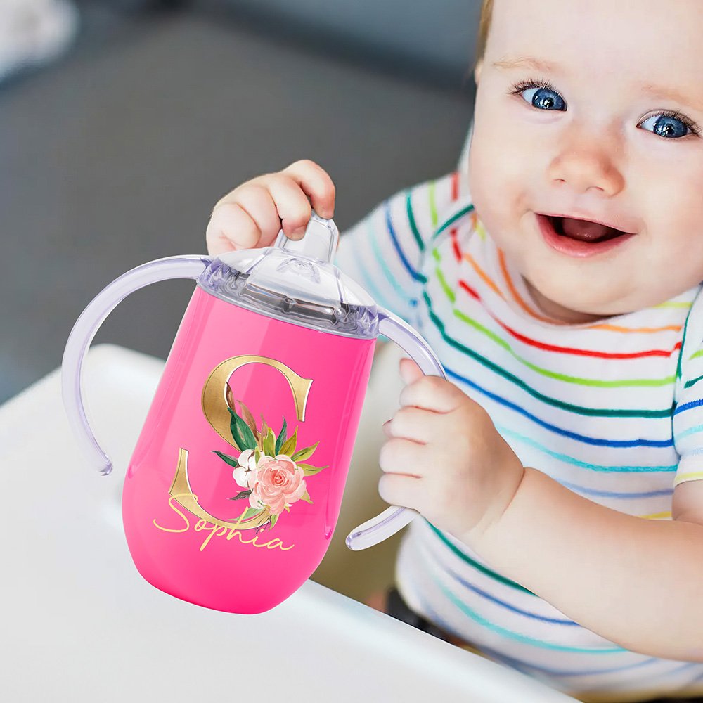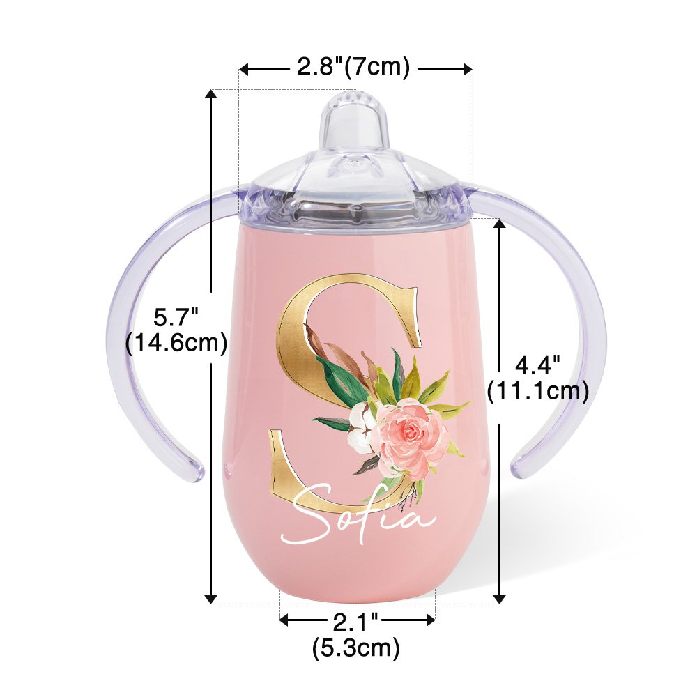 This sippy cup mainly features floral design, which is eye-catching. It has two style combinations for you to choose from. You can choose exquisite and beautiful floral letters or simple abbreviations to meet your personalized needs, thereby customizing your unique fashion item.