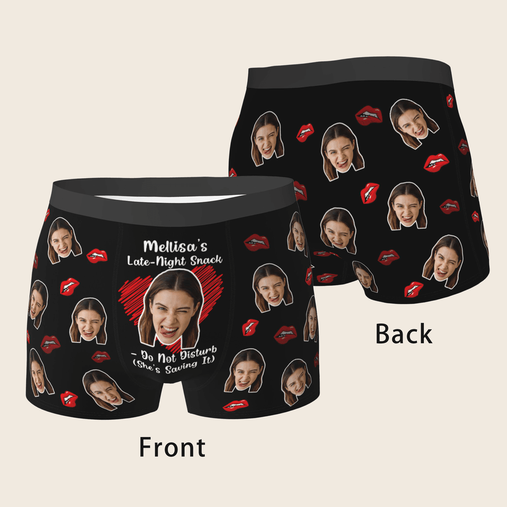 This playful boxer brief features a fully customizable design: a repeating print of your partner’s custom avatar, paired with the cheeky slogan Name’s Late-Night Snack – Do Not Disturb She’s Saving It” and playful lip motifs. With 8 color options from bold to muted tones, the design wraps intimate couple humor in a relatable “foodie joke” — turning a basic underwear piece into a one-of-a-kind, inside-joke-filled accessory that feels uniquely tied to your relationship.