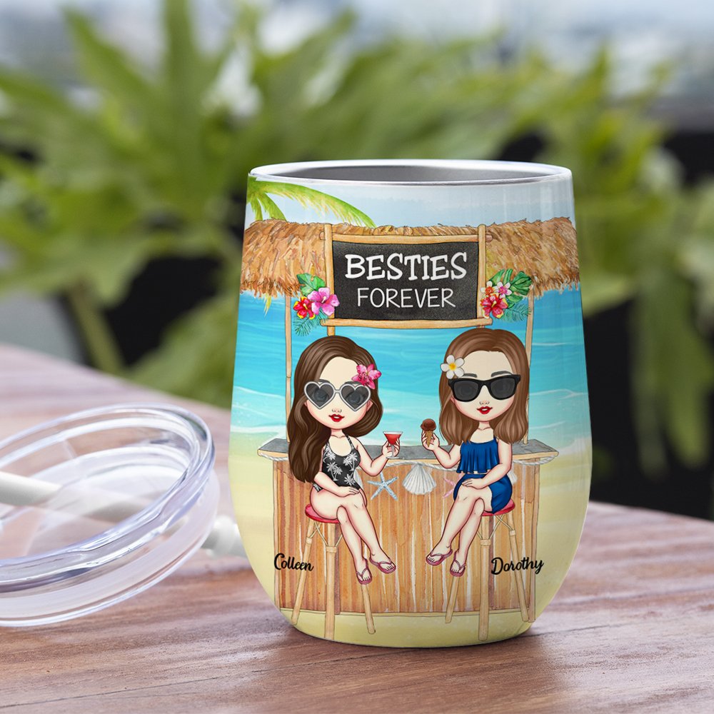 The personalized besties-themed wine tumbler is a perfect gift to celebrate the unique bond between best friends. With the option to customize the names and characters of you and your female friends, this tumbler becomes a cherished keepsake, capturing the beautiful moments spent with your bestie.