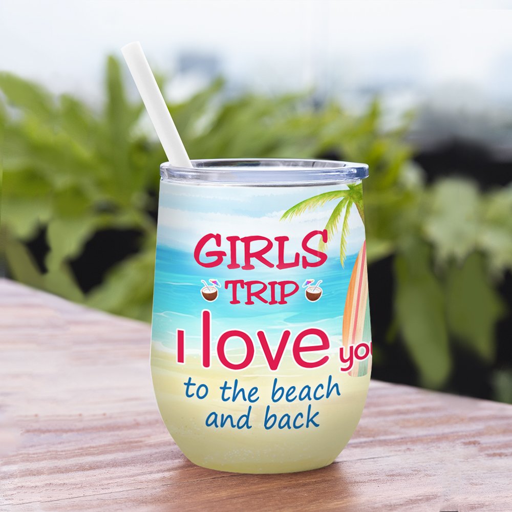 Personalized Girls Trip I Love You to the Beach And Back 12oz Wine Tumbler Birthday Gift for Sisters Besties