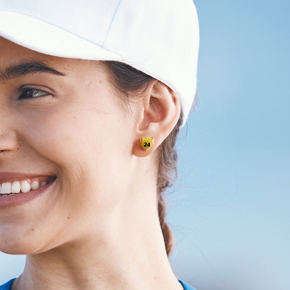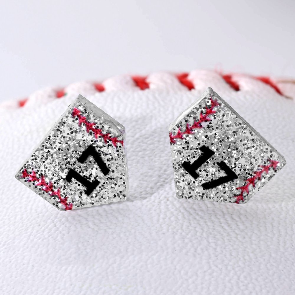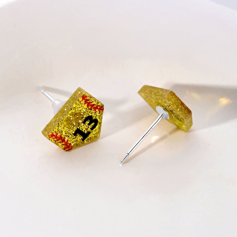 These stud earrings feature vibrant baseball or softball designs decorated with sparkling glitter, highlighting their dynamic beauty. Customize them with your favorite player’s number to cheer them on while showing your love for the game.