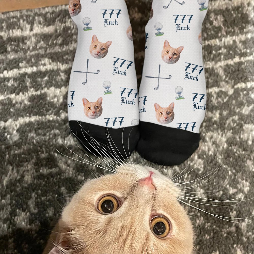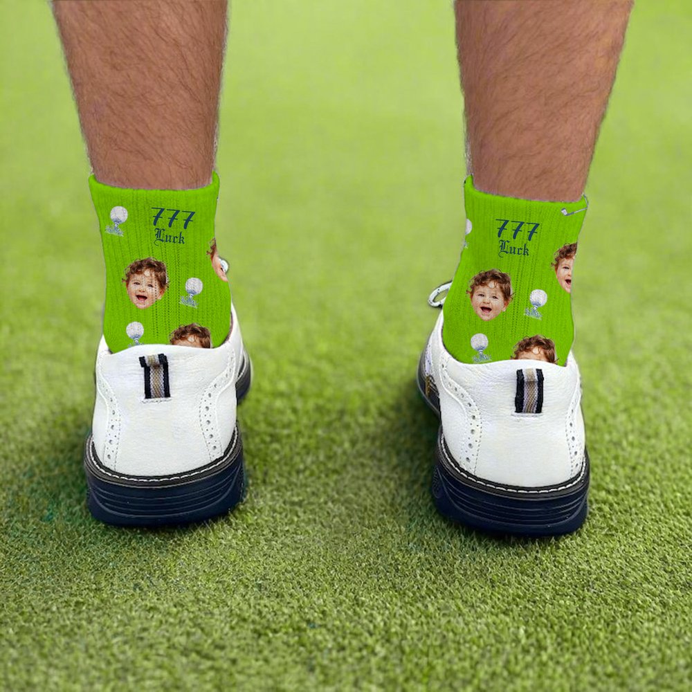 This pair of socks cleverly incorporates golf-themed elements with golf ball patterns and lucky numbers printed on them, making them not only sporty but also full of vitality and fun, bringing you luck. The photos on the socks can be uploaded according to personal preferences, providing you with a unique and exclusive experience.