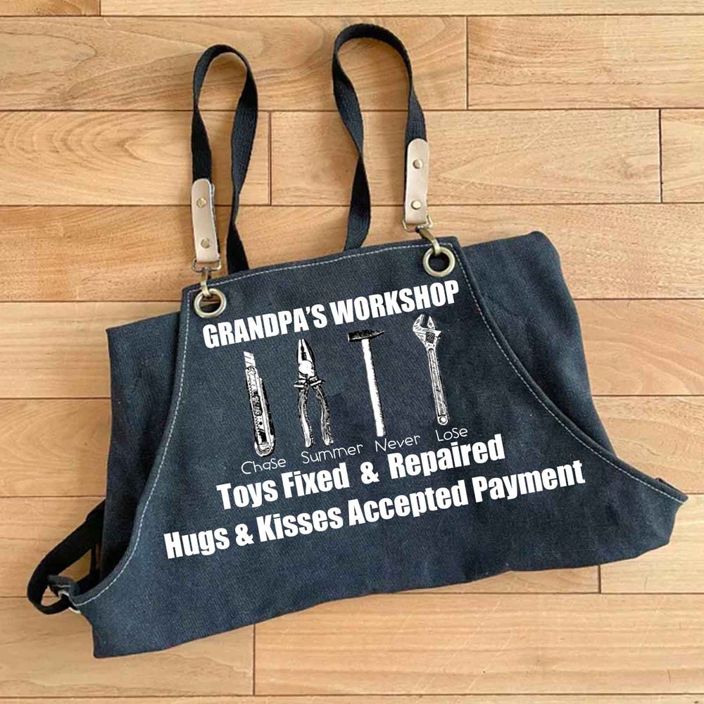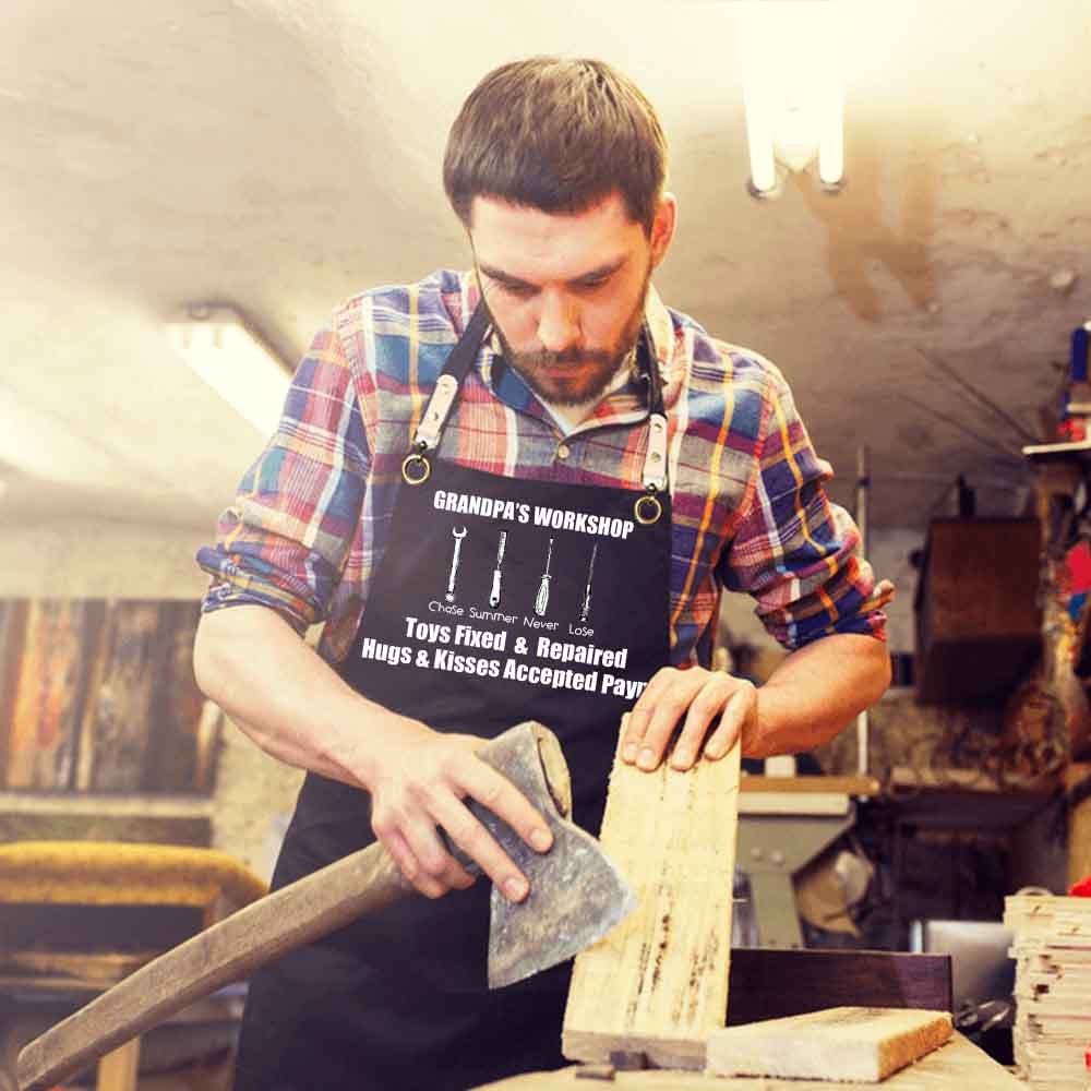 Each tool represents a child and can be customized with up to eight tools and eight children's names. Create a unique apron with the names of family members, it must be a meaningful gift for grandpa or dad.