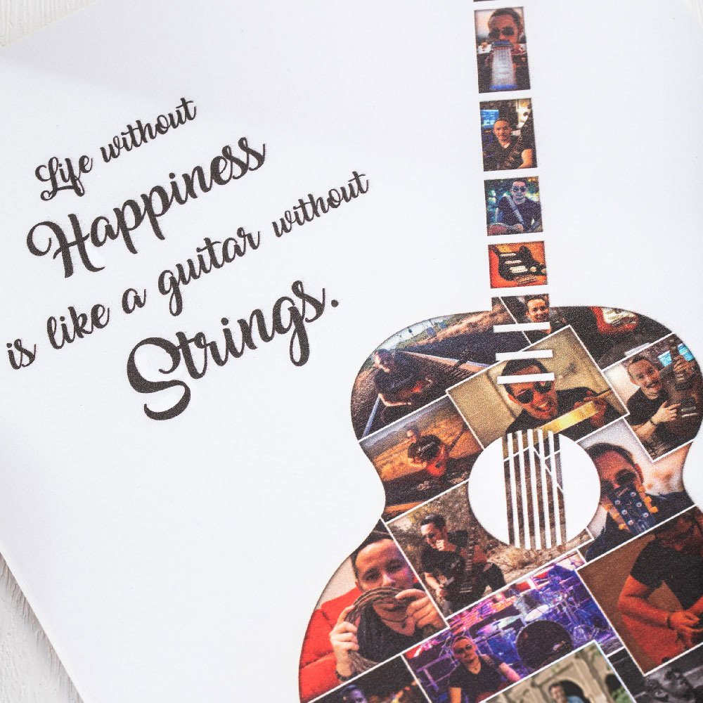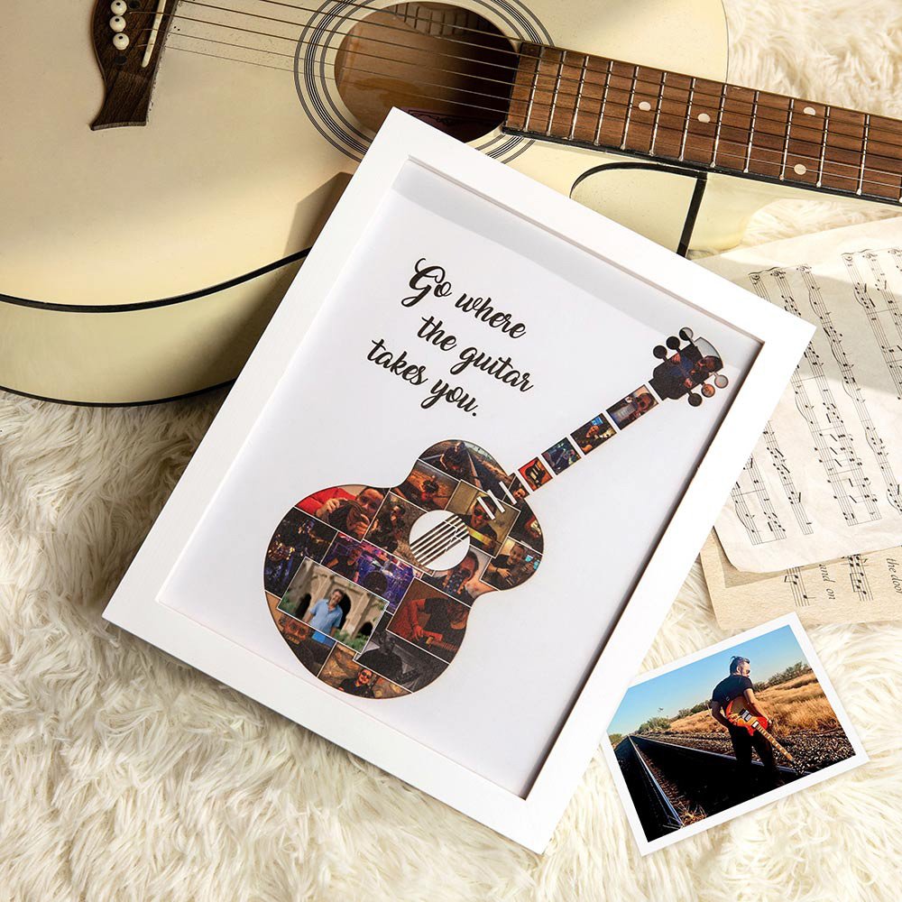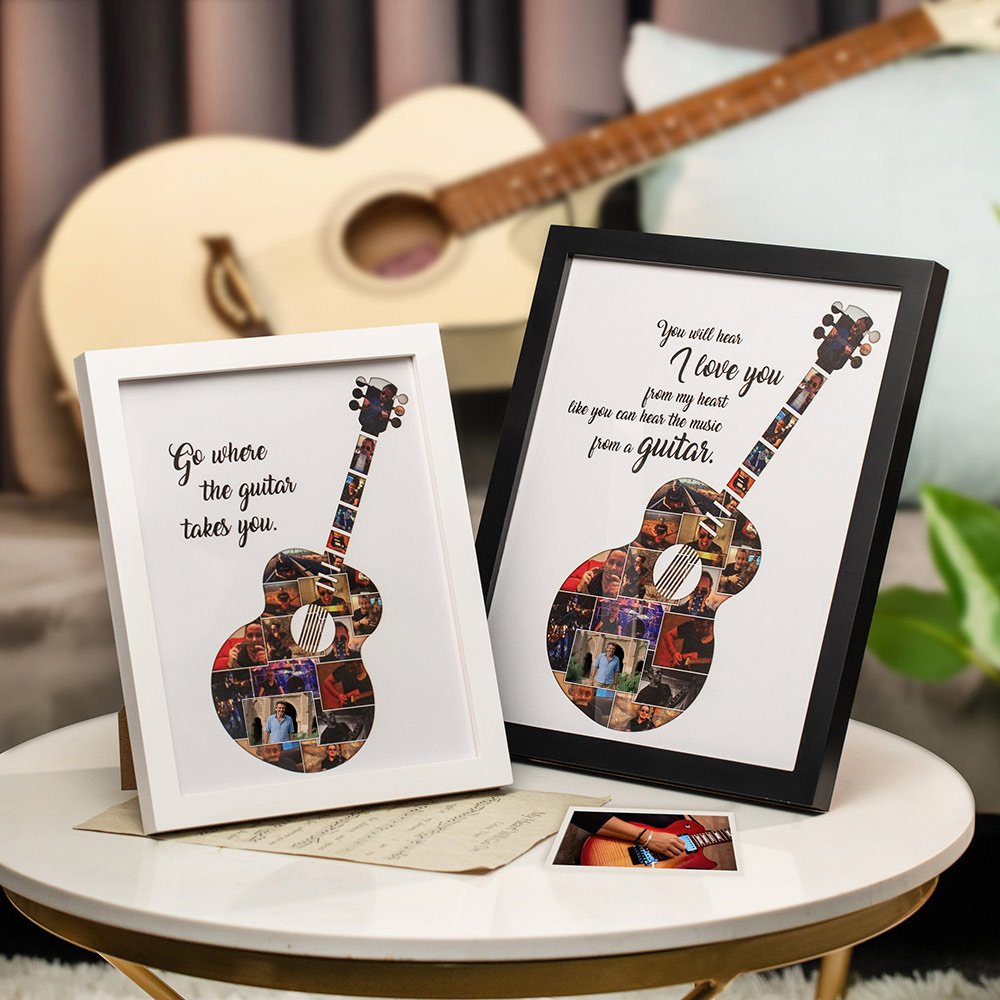 • Stylish Guitar Photo Collage: If you are looking for a gift with personality, this is what you want. Use 20 photos to compose a guitar. There is no doubt that this gift is the best gift to commemorate those happy times when music accompanies you.