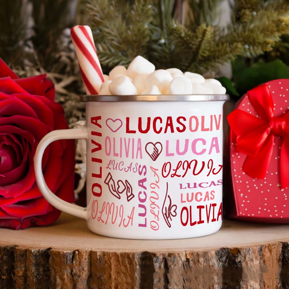With a simple design style, the surface of the cup is printed with the names of the couple and a pattern of love hearts. The overall design is unique and full of design, creating a unique gift that shows love and warmth.