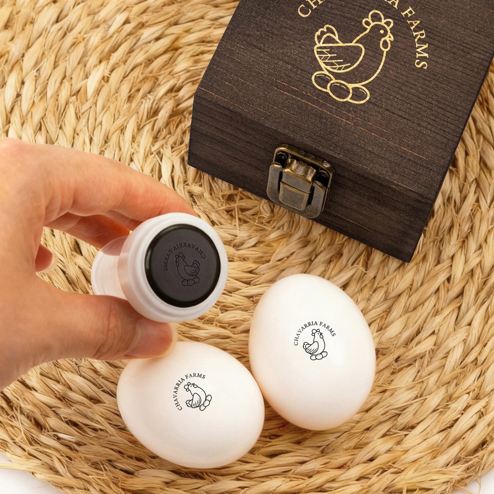 Personalized Hen Silhouette Petal Egg Safe Egg Stamp with Food Grade Ink and Wooden Box Birthday Christmas Gift for Family Farmer Breeder