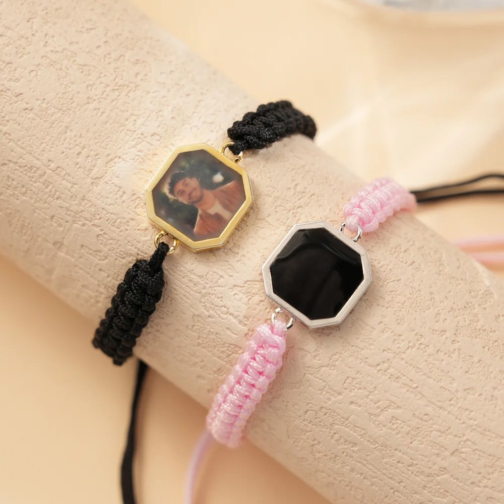Our bracelet features a thermally activated photo technology. At room temperature, the pendant appears like any other piece of jewelry, but as you touch it, it gradually heats up. Once the temperature exceeds 30°C, something magical happens—your uploaded photo appears on the jewelry, bringing you a beautiful and emotional surprise.