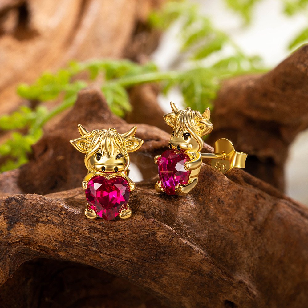 The highland cow symbolizes friendliness, integrity, hard work, selfless dedication, and wealth. The design features an adorable Highland cow motif crafted with intricate details. The cow's face is charming, with its cute little ears and gentle expression. The heart-shaped birthstone nestled in the cow's body makes these earrings truly special. This adds a touch of personalization and color, making each pair unique.