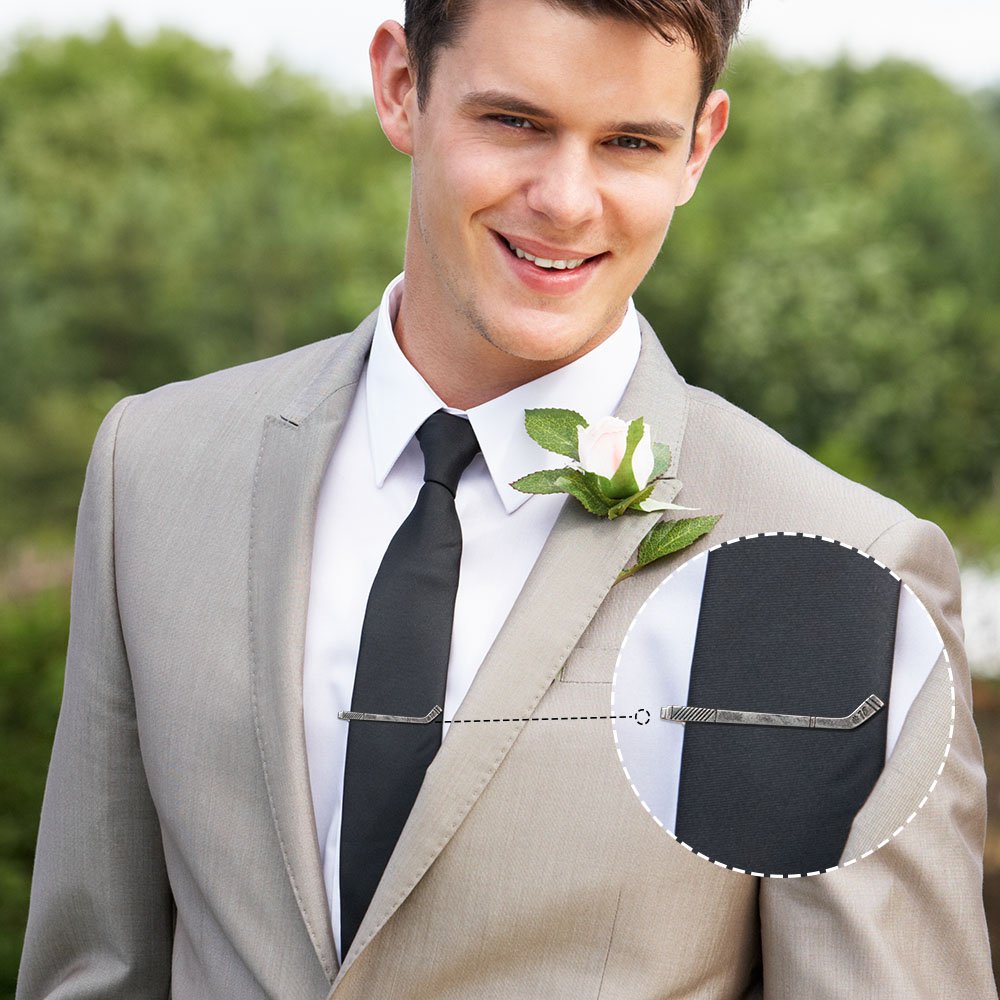 Clip the tie to the front of the tie, preventing the connection from wiggling and ensuring the association hangs straight for a neat, unified look. The perfect gift for a groomsman, groom, boyfriend, or dad.