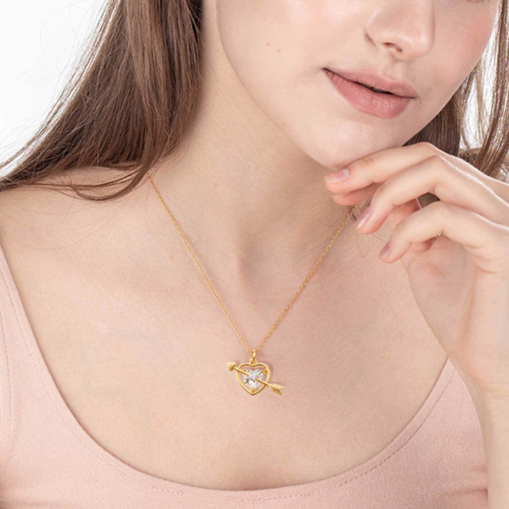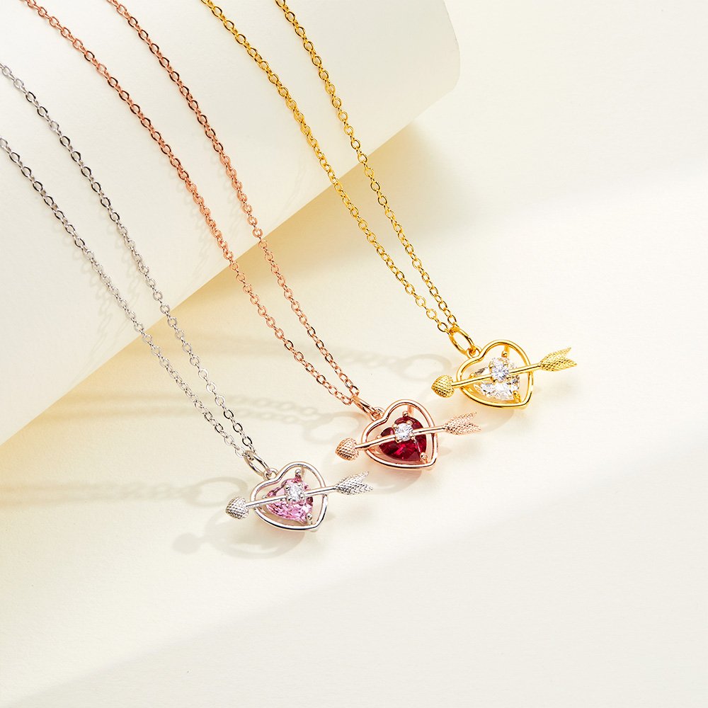 This necklace is stunning. It comes with an openwork heart pendant with a birthstone in the center and an arrow through the heart, representing being struck by Cupid, symbolizing a long-lasting romantic love between two people. You can customize it by choosing the birthstone corresponding to the wearer's birthday, making it a truly meaningful piece of sentimental jewelry.