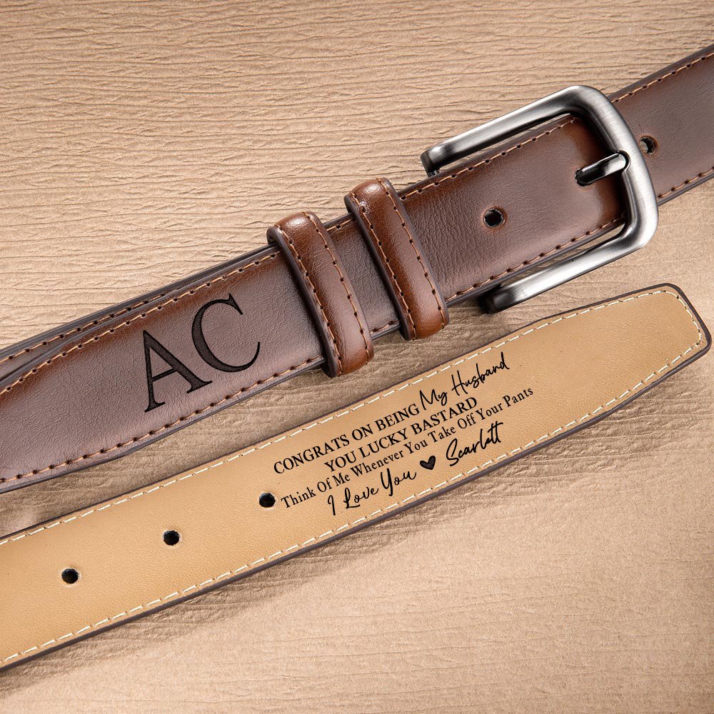 Offering you four colors to choose from, you can engrave a thoughtful message, name, or meaningful date on the belt, and choose to customize the front and back, with the words "CONGRATS ON BEING My Husband You Lucky Bastard Think Of Me Whenever You Take Off Your Pants I Love You Name On The Back", making this a unique gift for men.