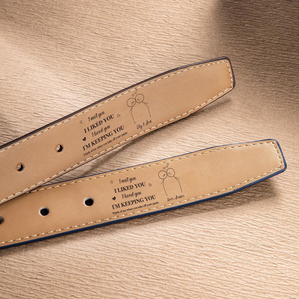 This belt comes in four different colors, and with a silver buckle, it not only highlights the low-key luxury but also reveals a calm temperament. The inside of the belt is engraved with warm love words and a couple of patterns, such as "I met you", "I liked you" and "I loved you", with personalized name customization, making this belt a perfect carrier to express love.